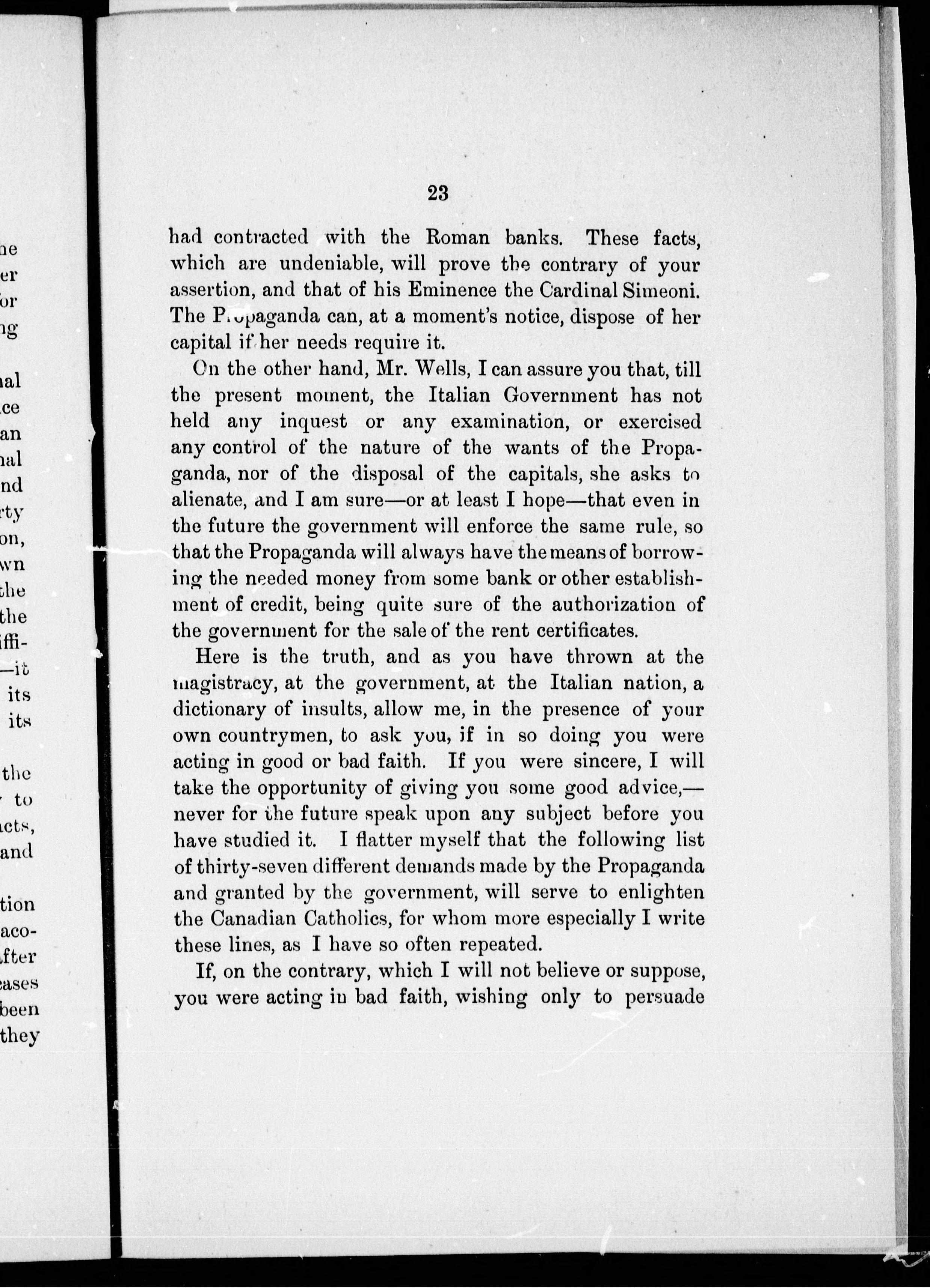 'Reply to the pamphlet "Spoilation of the Propaganda's estates."'
