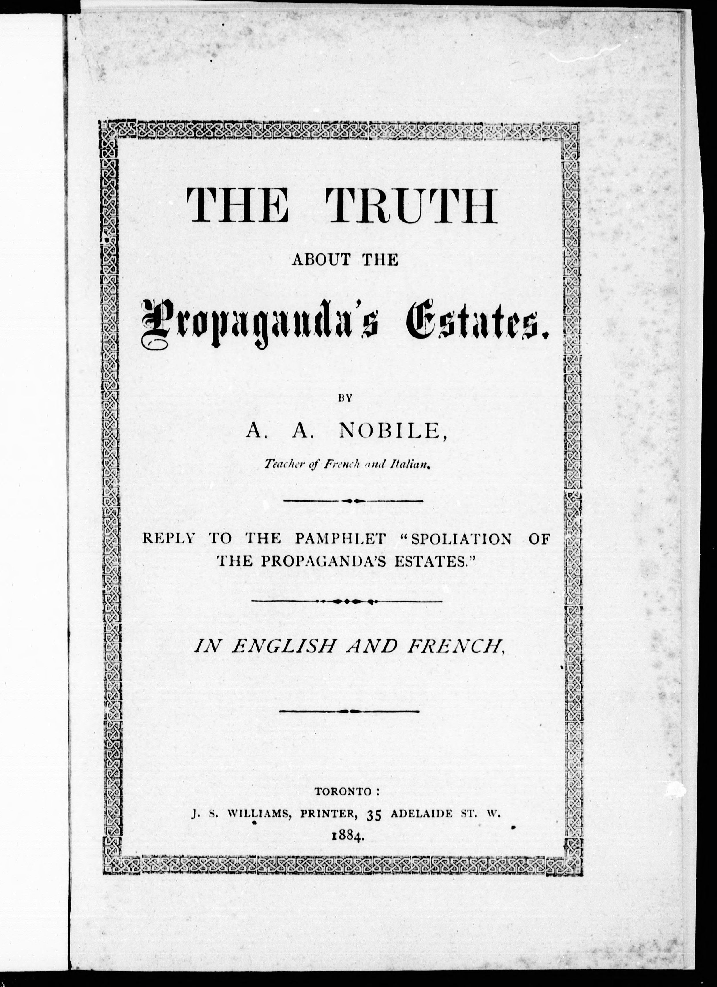 'Reply to the pamphlet "Spoilation of the Propaganda's estates."'