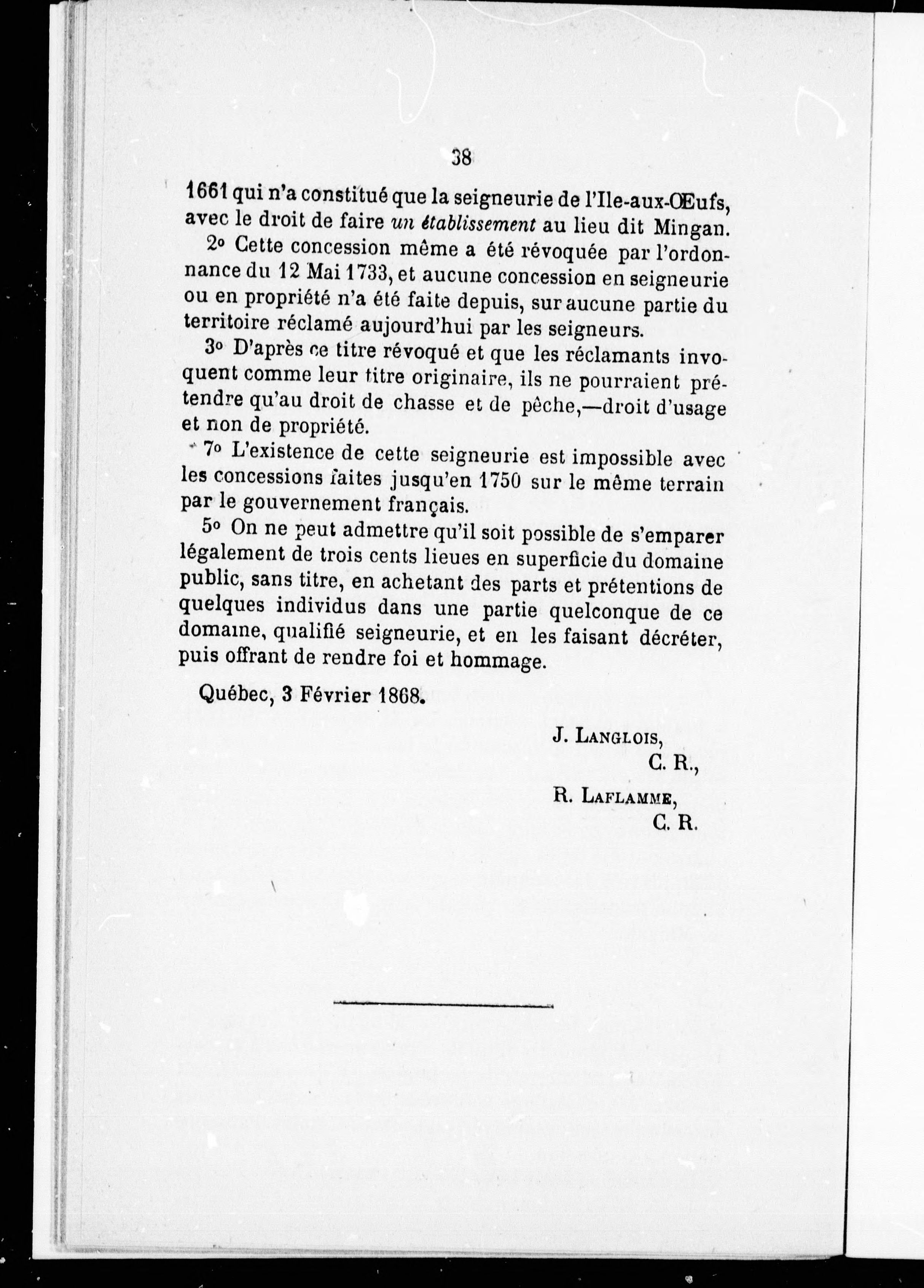 Réponse au mémoire produit par les prétendus seigneurs de Mingan /