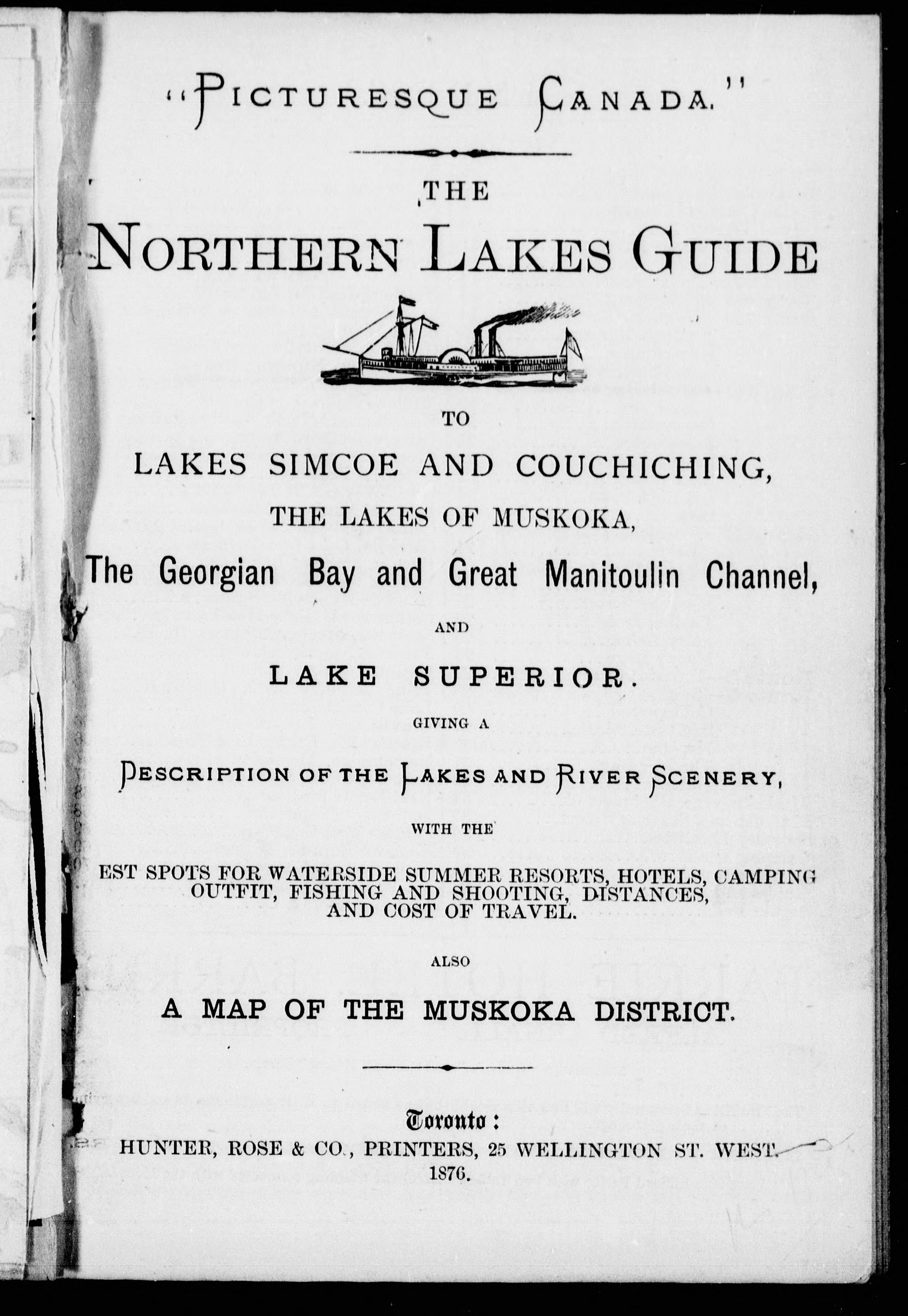 - The Northern lakes guide : to lakes Simcoe and Couchiching, the lakes of Muskoka, the Georgian Bay and Great Manitoulin Channel, and Lake Superior : giving a description of the lakes and river scenery with the [b]est spots for waterside summer resorts, hotels, camping outfit, fishing and shooting, distances and cost of travel.