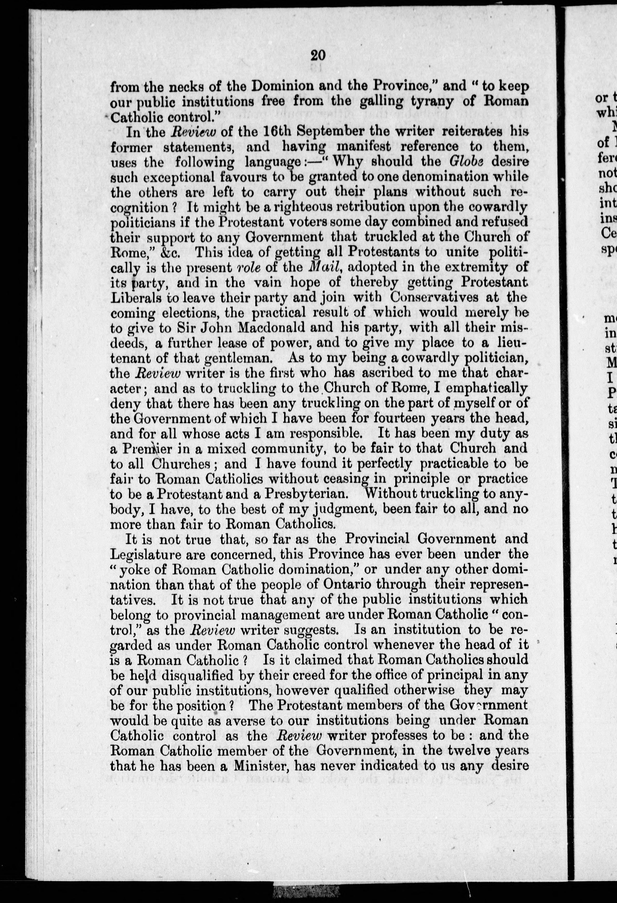 An open letter addressed by Hon. Oliver Mowat to Rev. G.M. Mulligan, 29th October, 1886 :