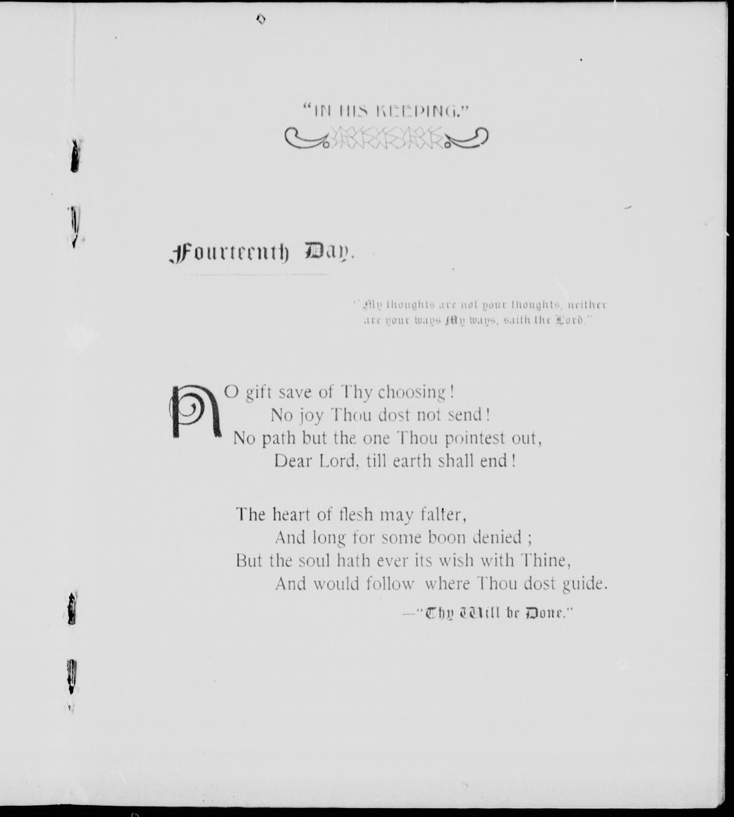 - "In his keeping" : words of sustaining from the source of all strength ; with kindred thoughts in verse
