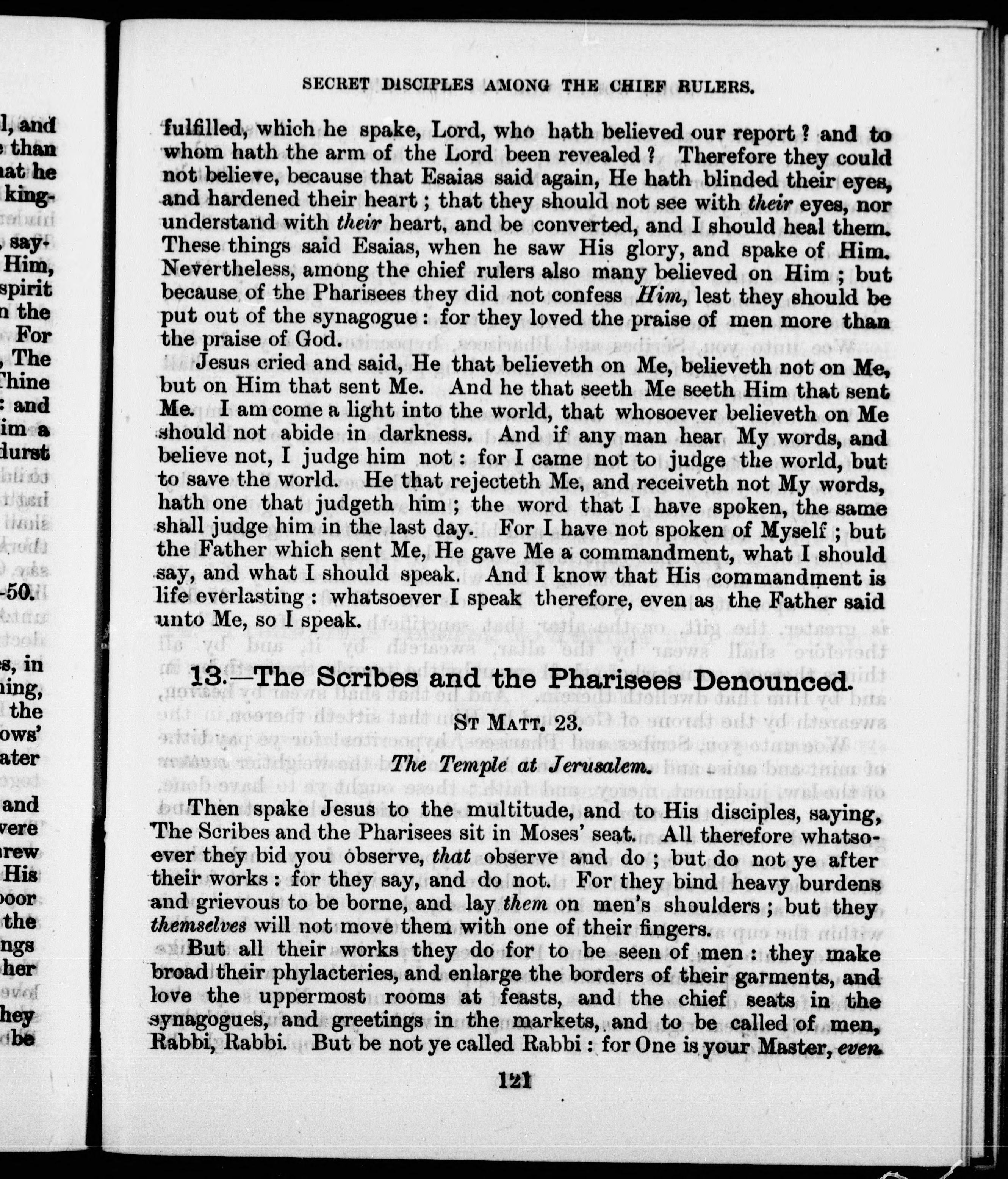 The Holy Gospel in continuous narrative, being an arrangement, according to chronological order and without any needless repetition of either incident or utterance, of the events and teachings of the life of Jesus Christ : in which all the particulars peculiar to each of the four evangelists are woven together and presented in a complete harmony, in the very words of the authorised version of the New Testament, and in a form suitable for systematic public or private reading - Adresse bibliographique
