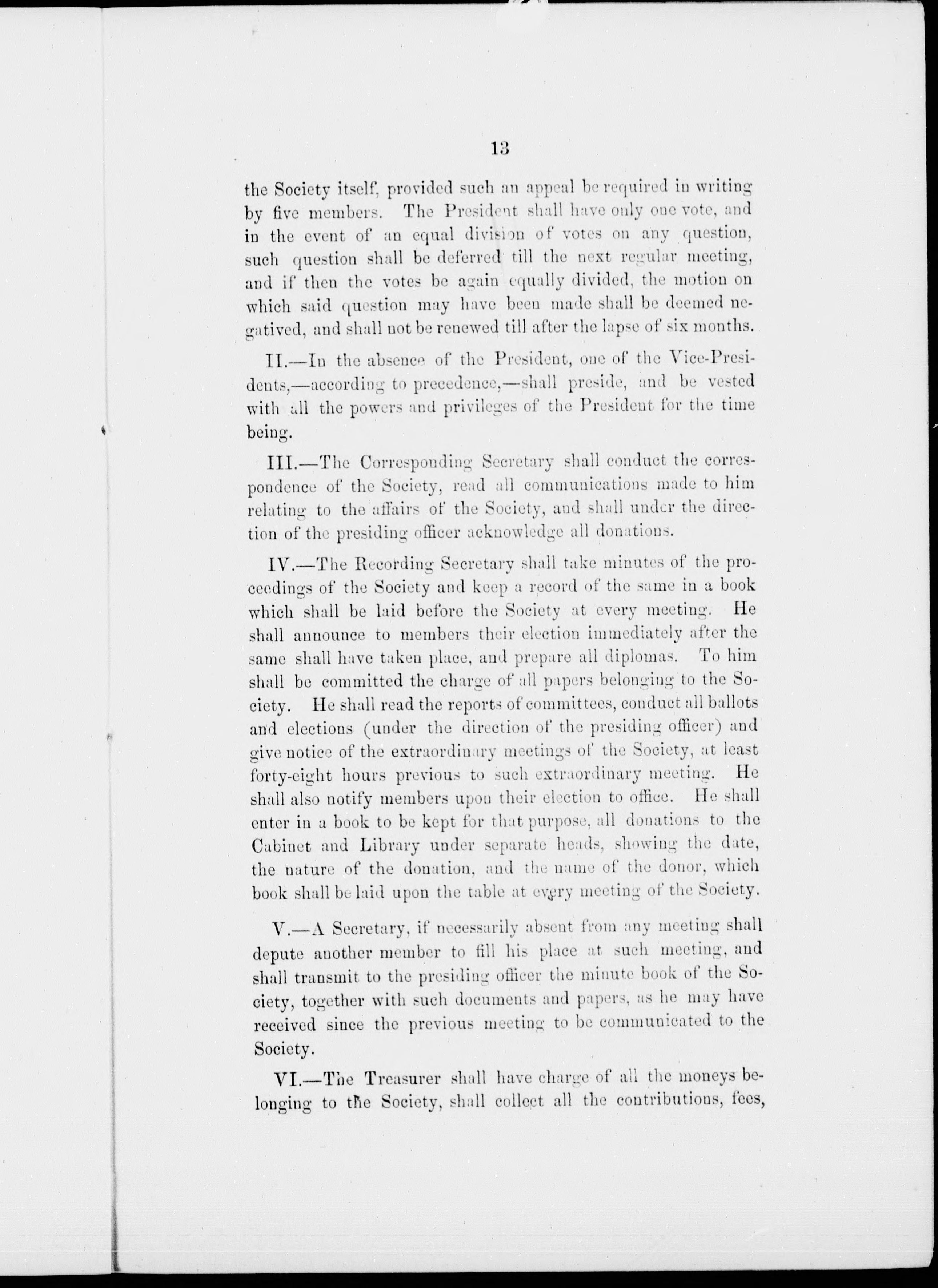 "Passed and authorized at a meeting of the Society held on Monday the 22nd February, 1886."