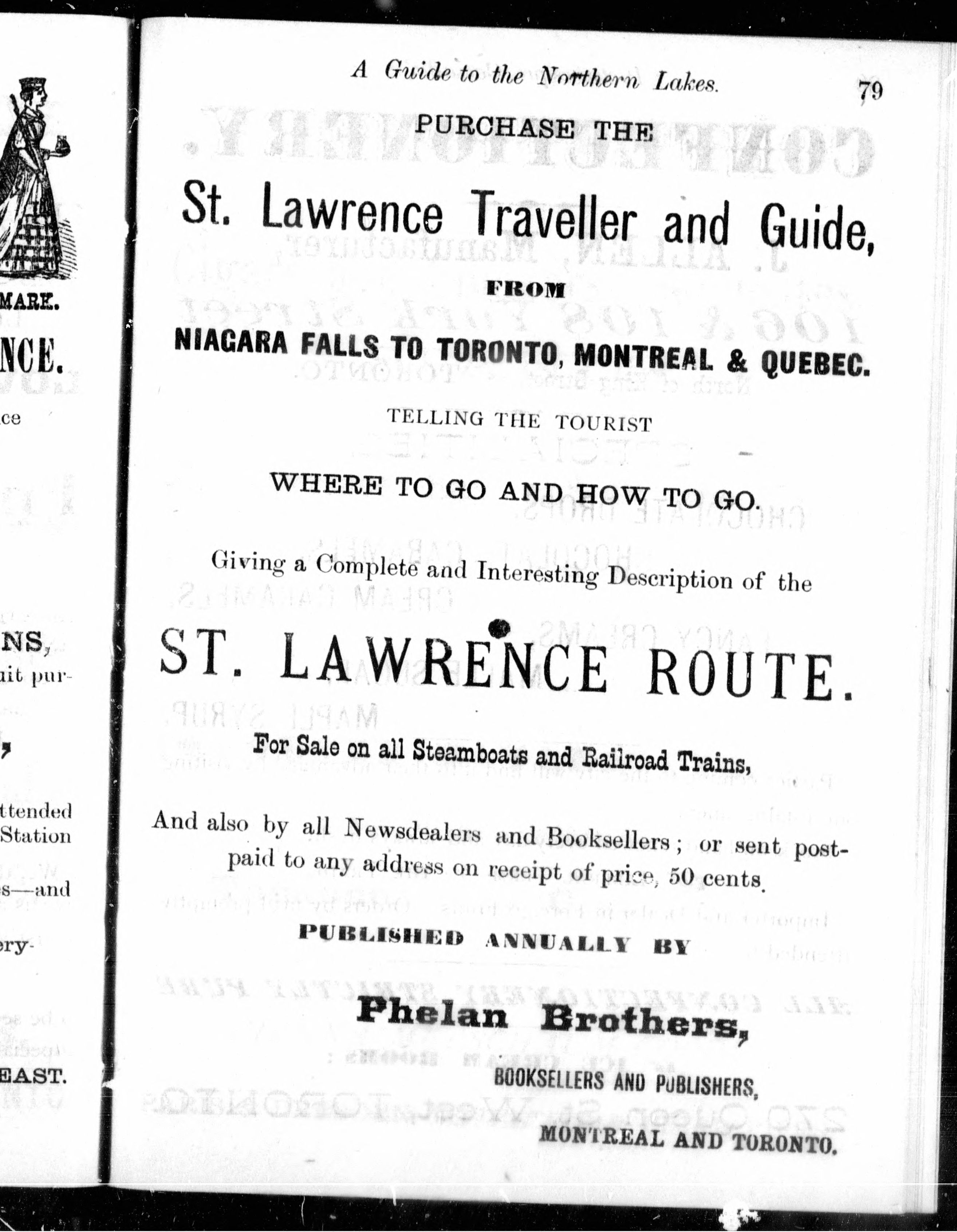 - The Northern lakes guide : to the Niagara River, Lakes Simcoe and Couchiching, the lakes of Muskoka, the Georgian Bay and Great Manitoulin Channel, and Lake Superiour, the Dalles of St. Louis, & Manitoba : giving a description of the lakes and river scenery, with the best sports for waterside summer resorts, hotels, camping outfit, fishing and shooting, distances, and cost of travel.