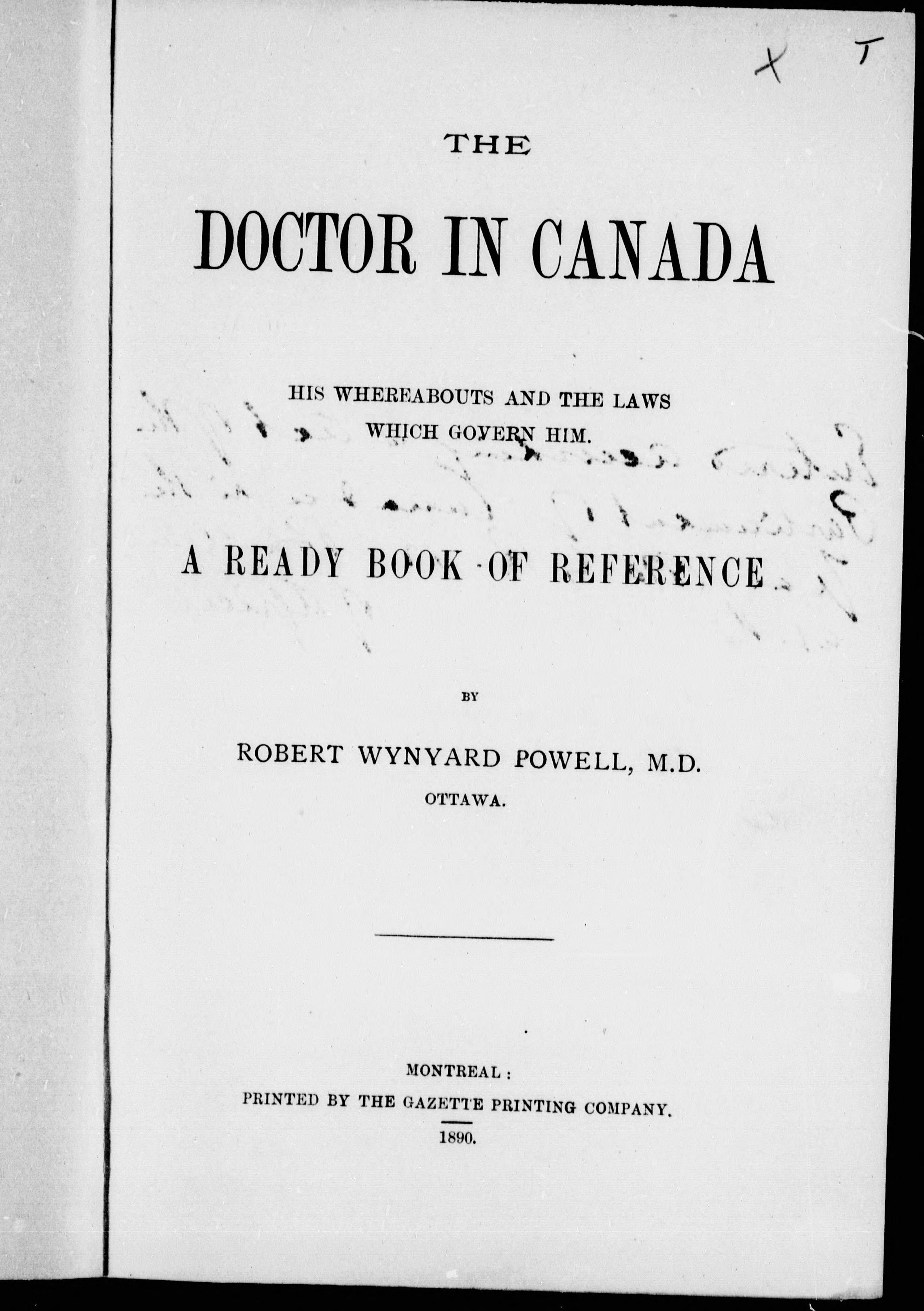 The doctor in Canada : his whereabouts and laws which govern him : a ready book of reference