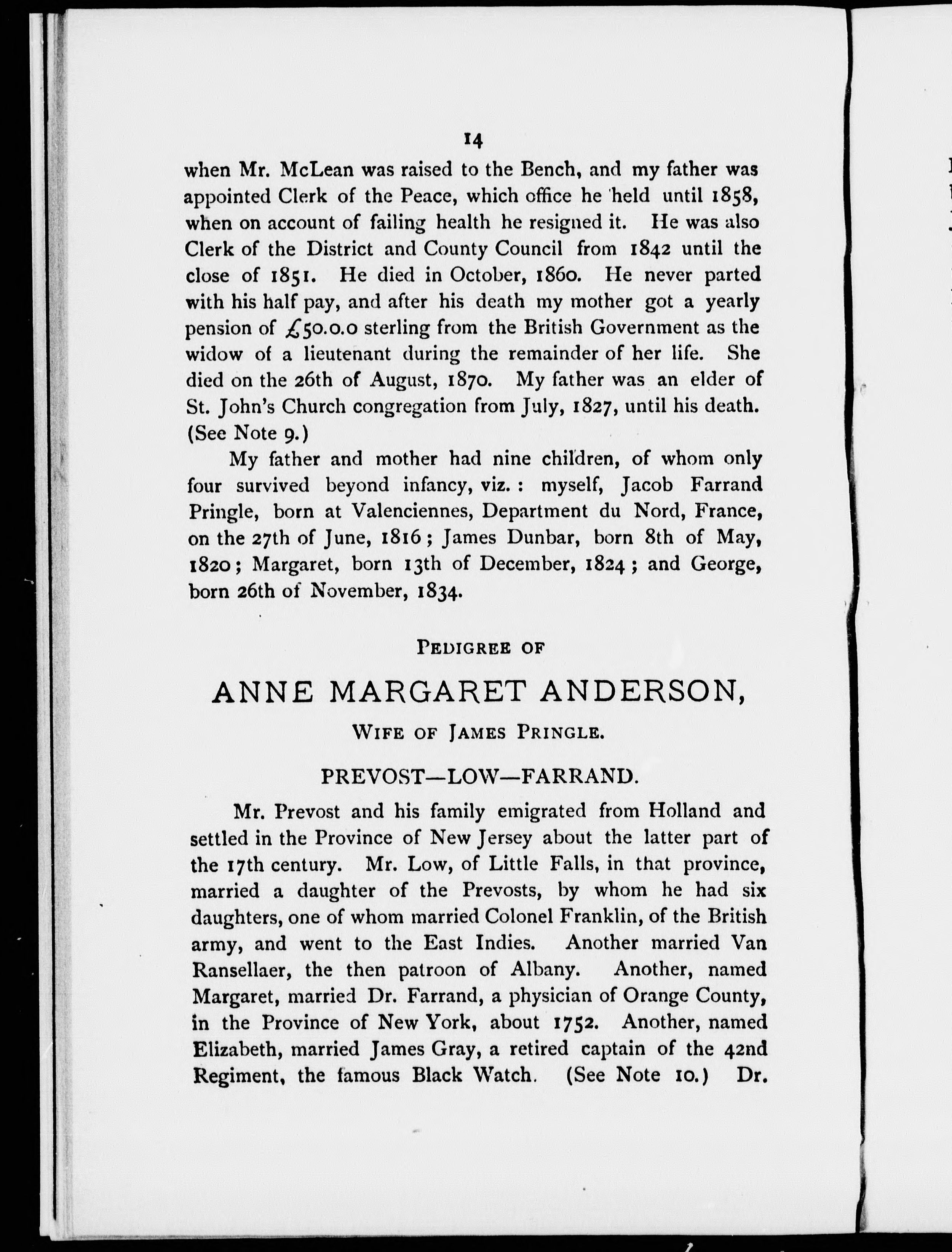 - The genealogy of Jacob Farrand Pringle and his wife Isabella Fraser Pringle.