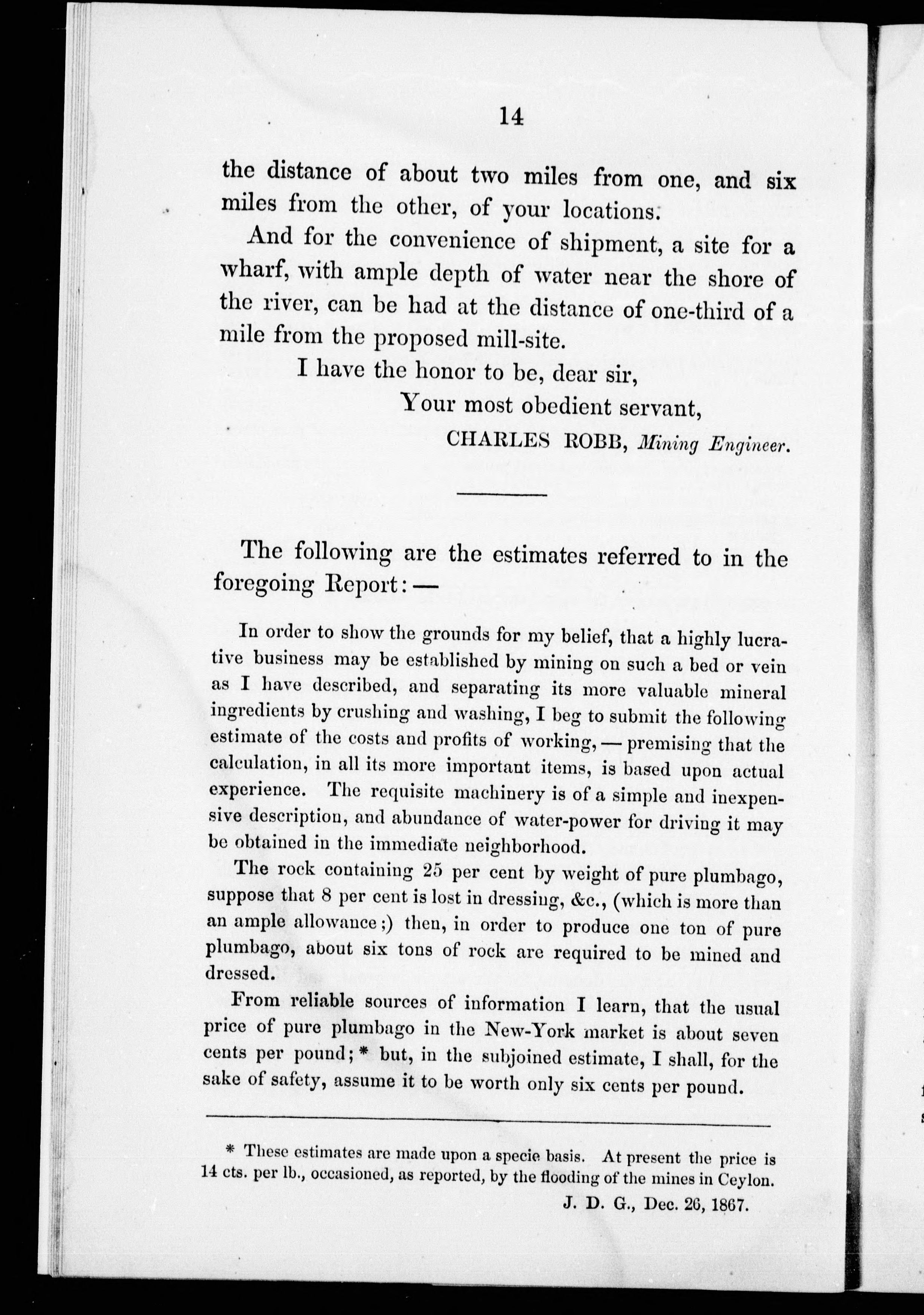 - Report on the plumbago mines situated at Pointe aux Chênes, Grenville, province of Quebec