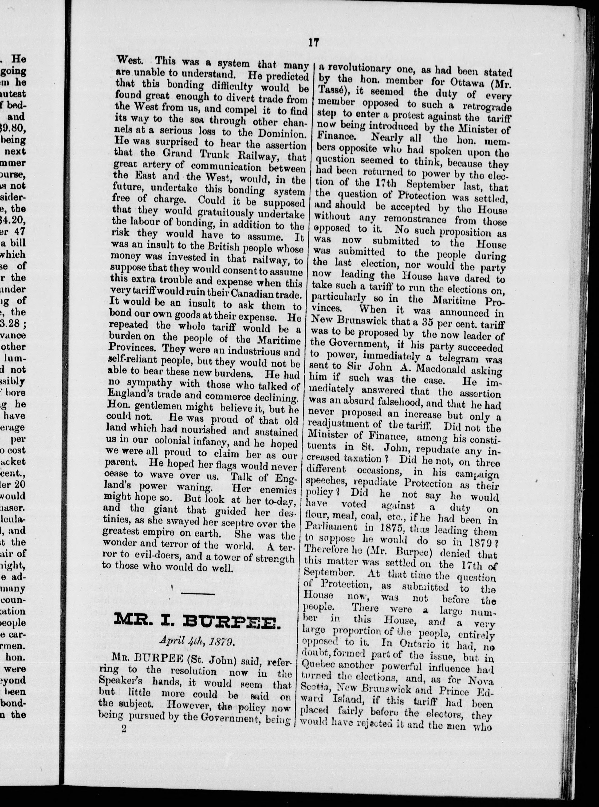- Official report of speeches delivered by New Brunswick members in opposition to the tariff : House of Commons, Ottawa, 1879