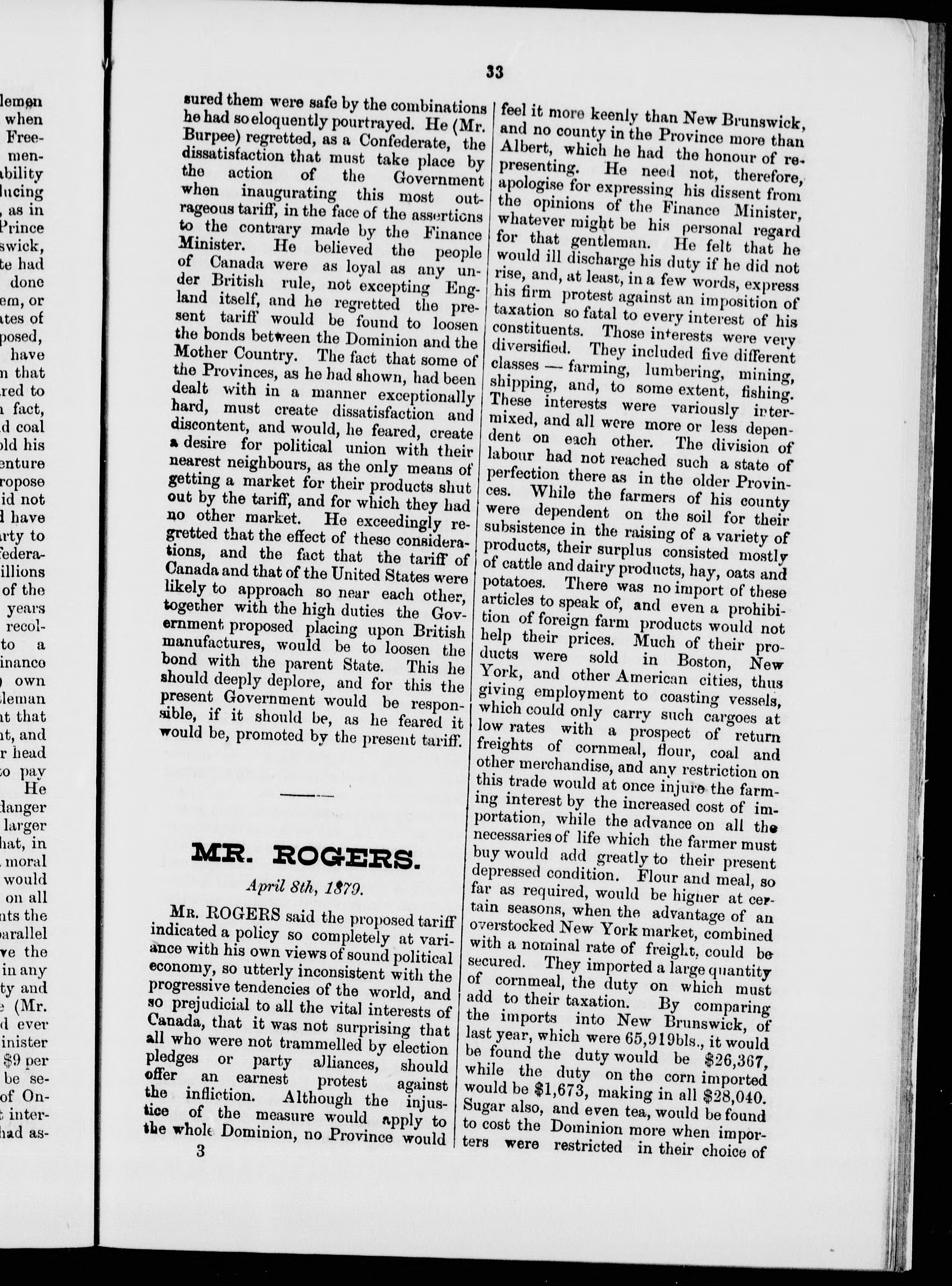 - Official report of speeches delivered by New Brunswick members in opposition to the tariff : House of Commons, Ottawa, 1879