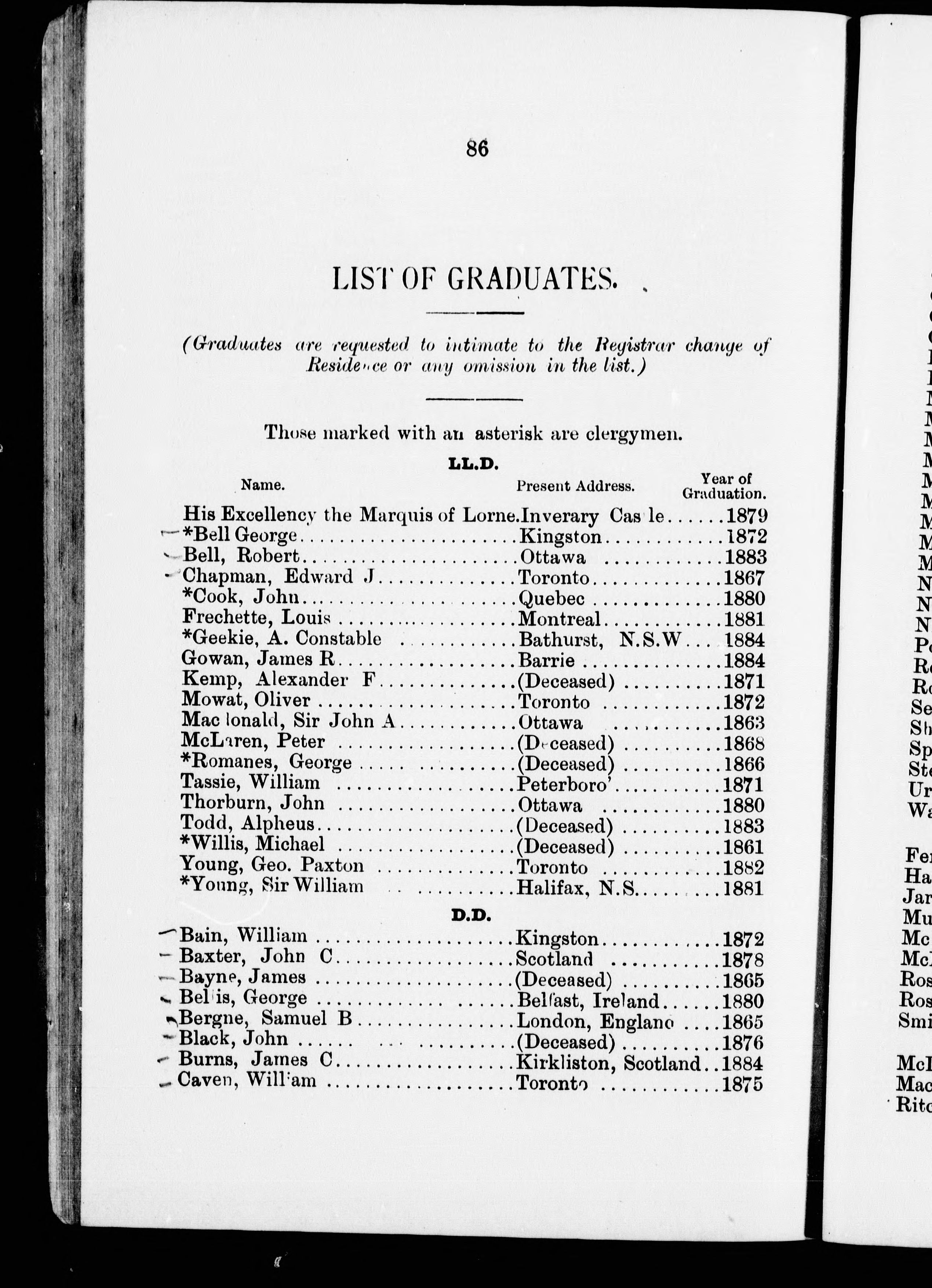 Extracts from Calendar of Queen's College and University for the year 1885-86.