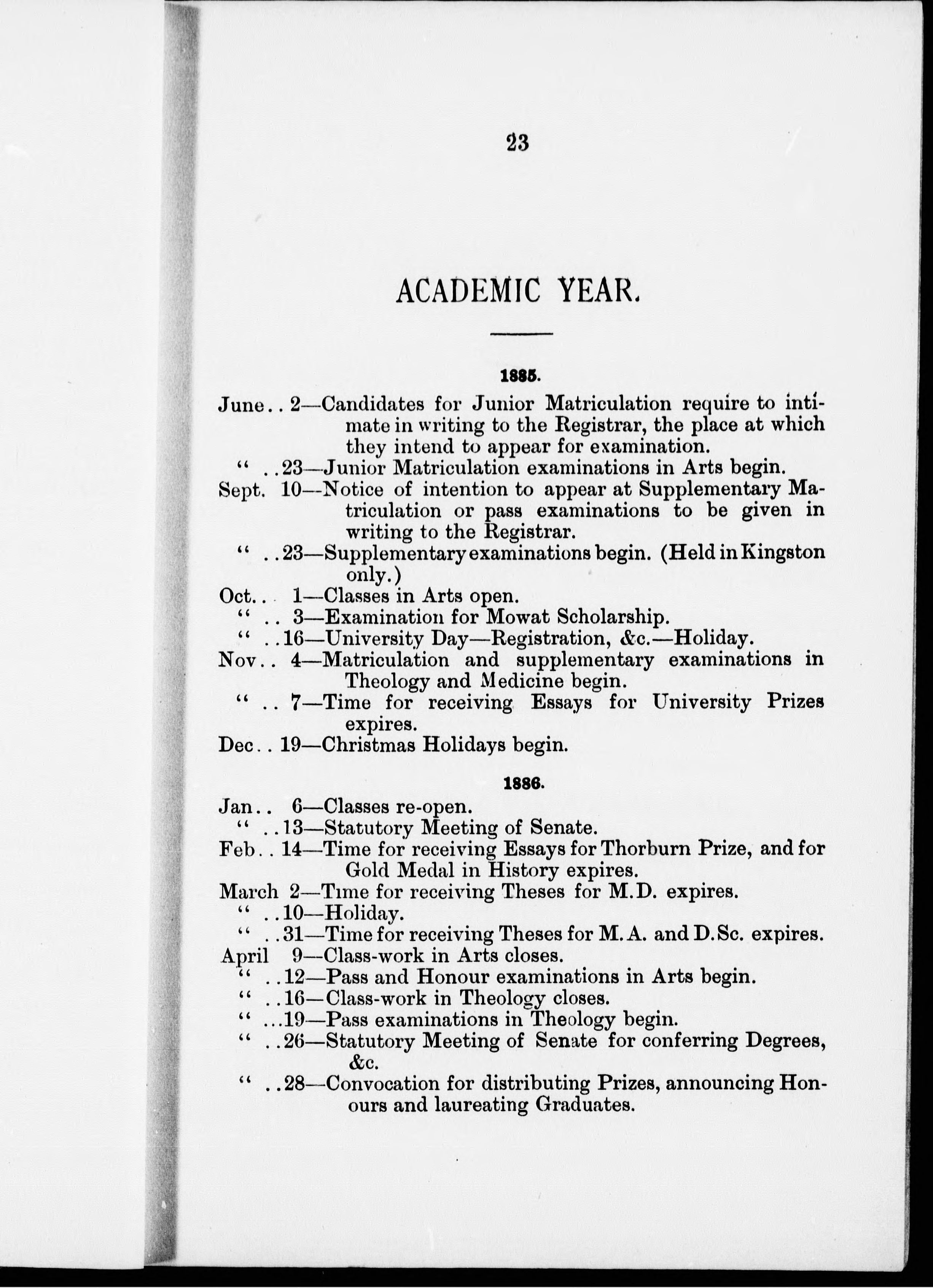 Extracts from Calendar of Queen's College and University for the year 1885-86.