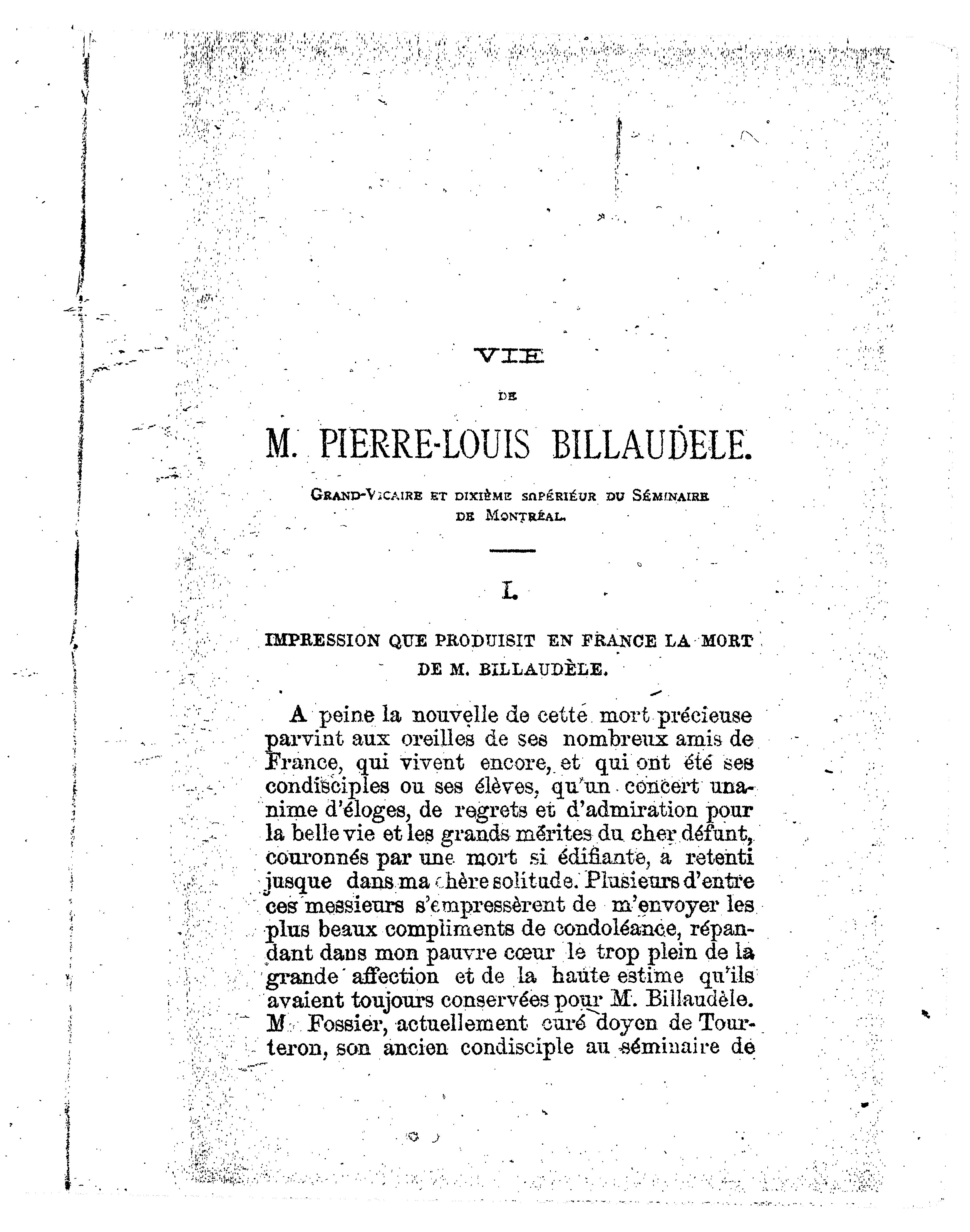Vie de M. Pierre-Louis Billaudèle : grand-vicaire et dixième supérieure [sic] du Séminaire de Montréal. - Adresse bibliographique