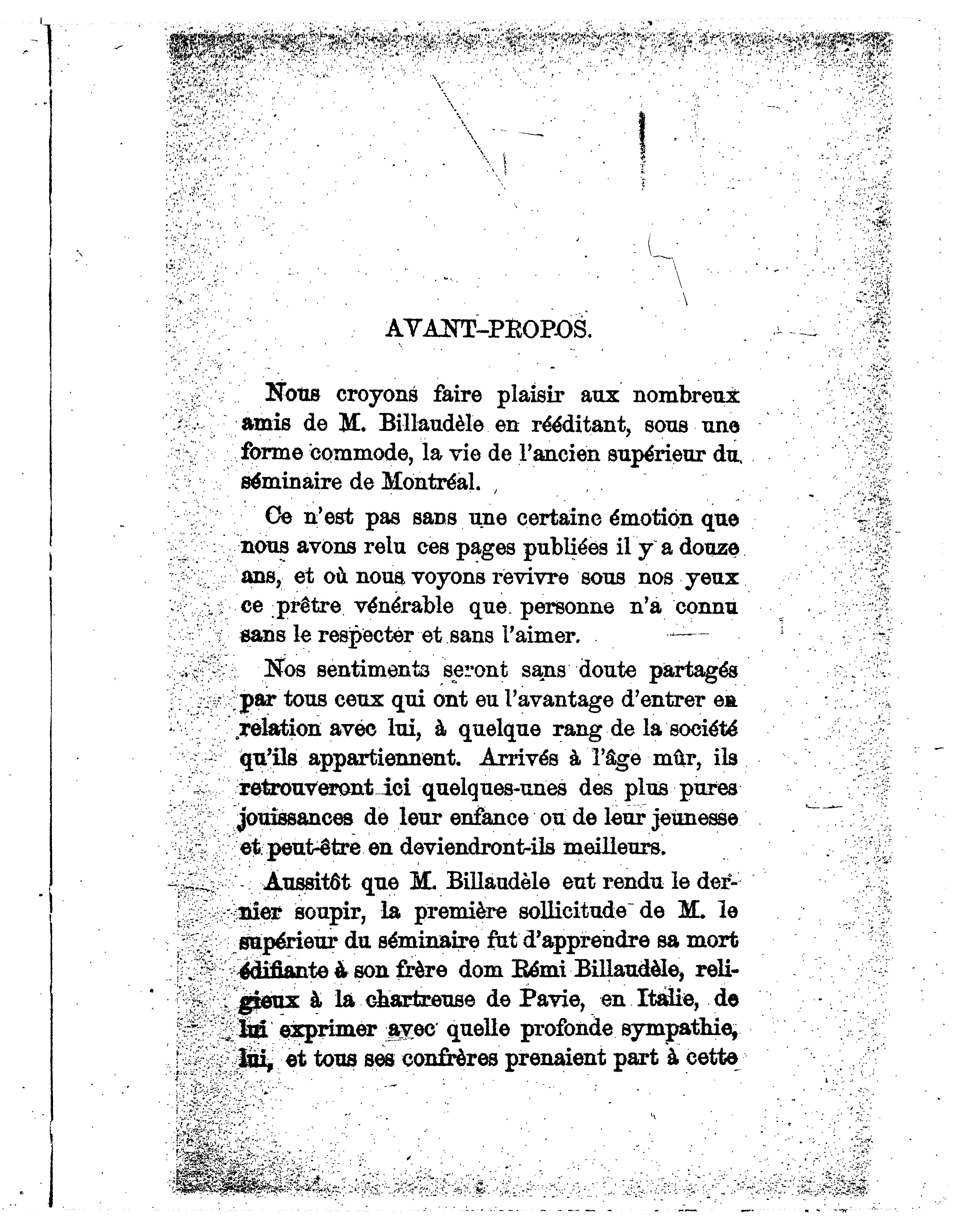 Vie de M. Pierre-Louis Billaudèle : grand-vicaire et dixième supérieure [sic] du Séminaire de Montréal. - Adresse bibliographique