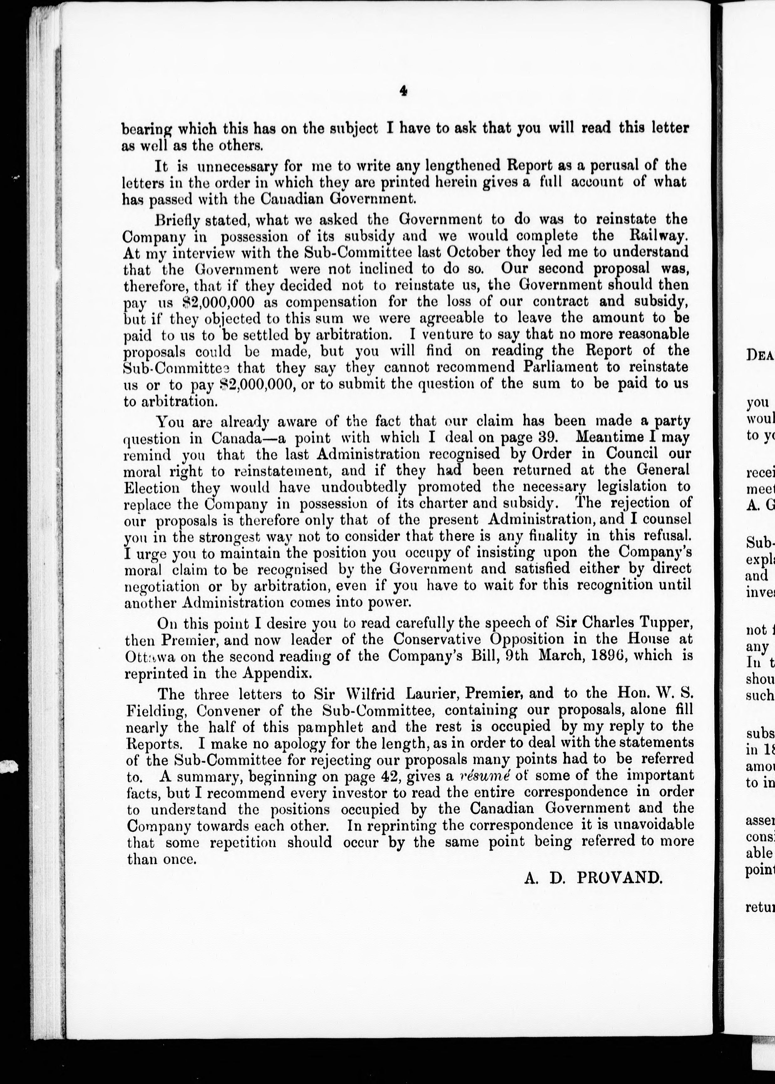 - Chignecto Marine Transport Railway Co., Ltd. report : report by A.D. Provand, M.P., relating to the negotiations with the Canadian Government for the reinstatement of the company or for payment of compensation.
