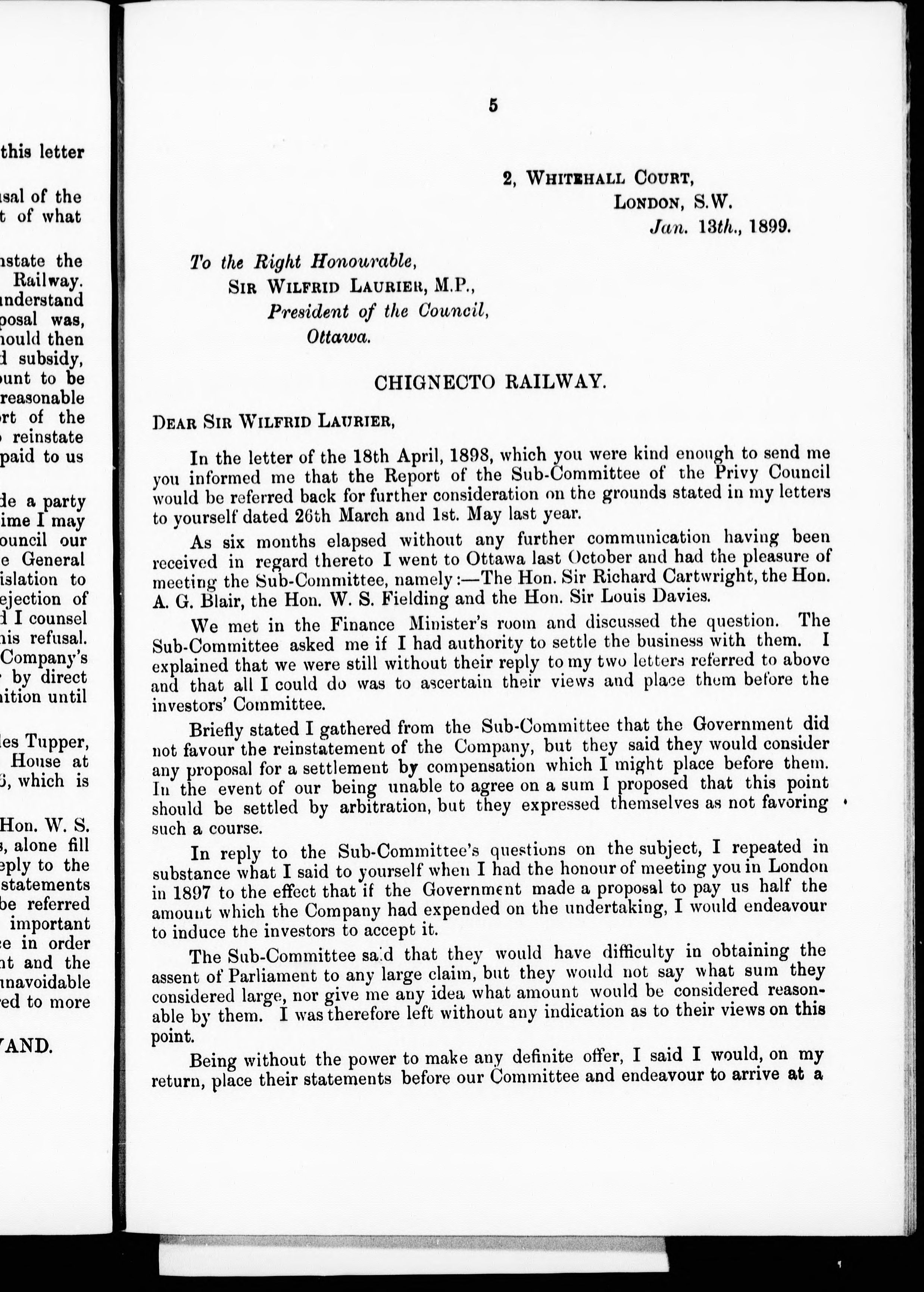 Chignecto Marine Transport Railway Co., Ltd. report : report by A.D. Provand, M.P., relating to the negotiations with the Canadian Government for the reinstatement of the company or for payment of compensation.