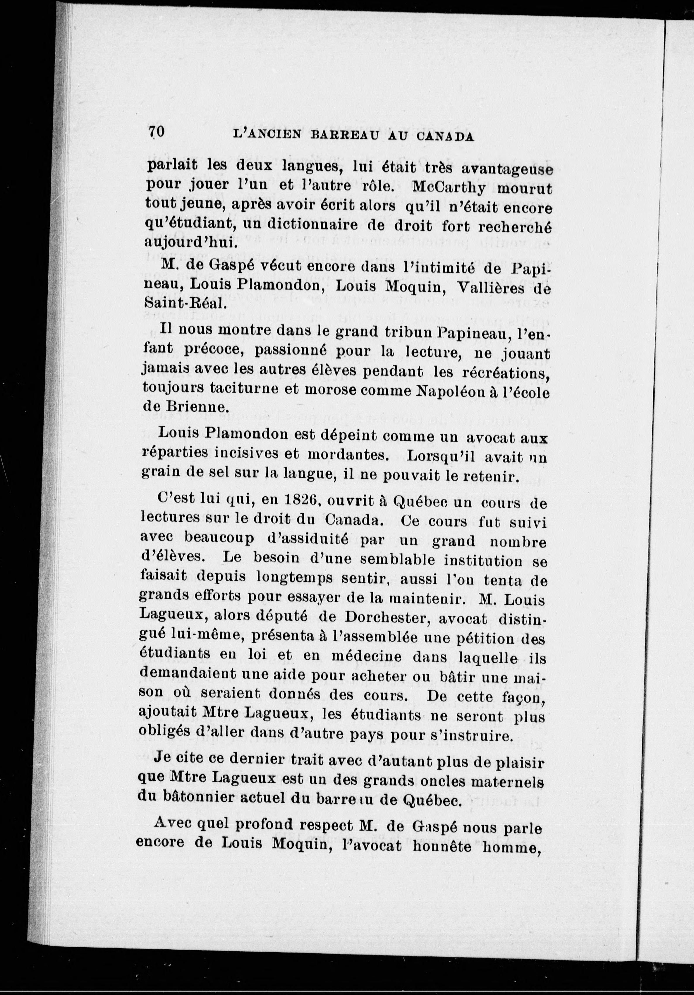 L'ancien barreau au Canada : conférence donnée devant le barreau de Québec dans la salle de la Cour d'assises au mois de févirer 1897