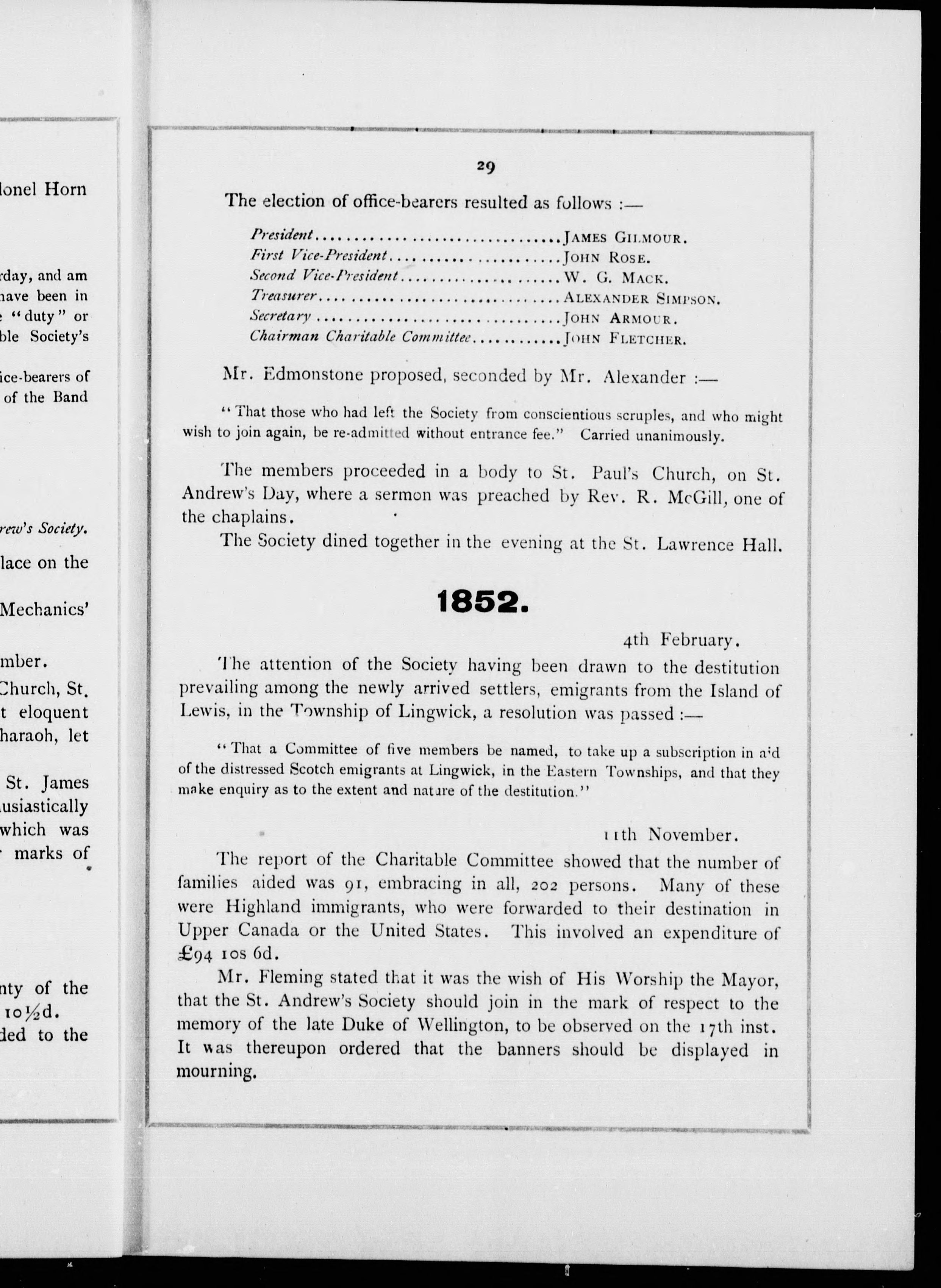 St. Andrew's Society of Montreal -- Histoire. - Document source