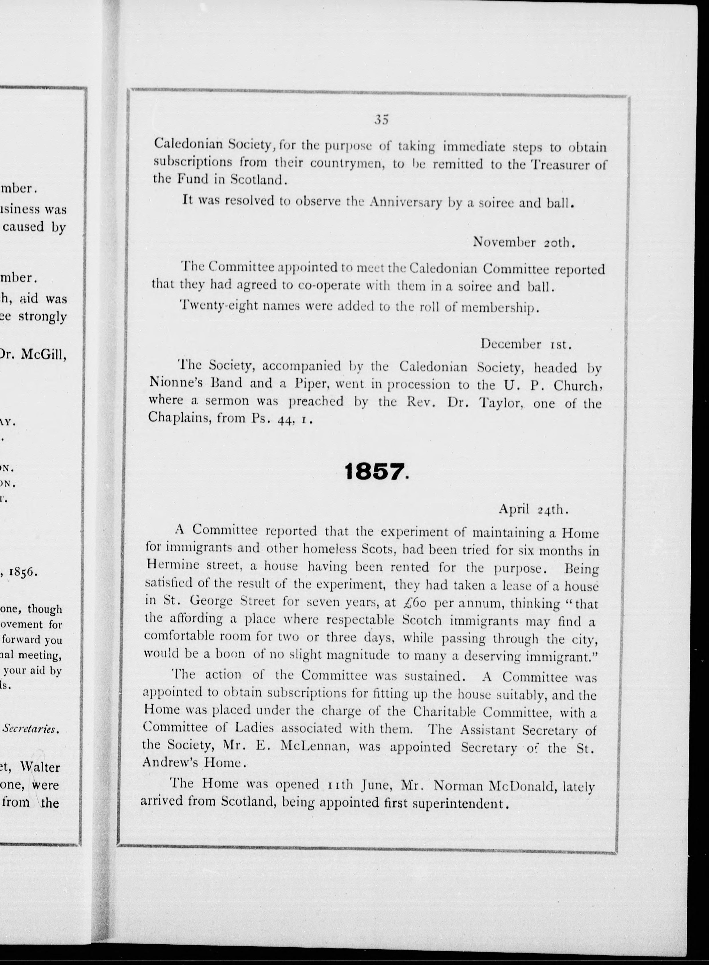 St. Andrew's Society of Montreal -- Histoire.