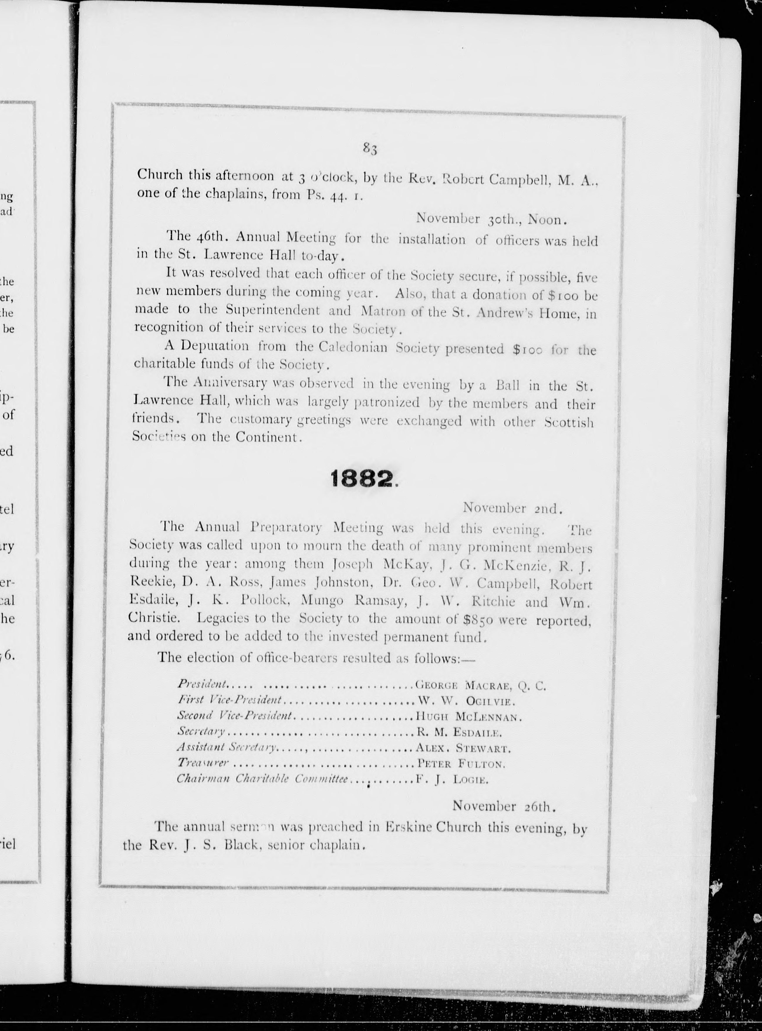 St. Andrew's Society of Montreal -- Histoire. - Document source