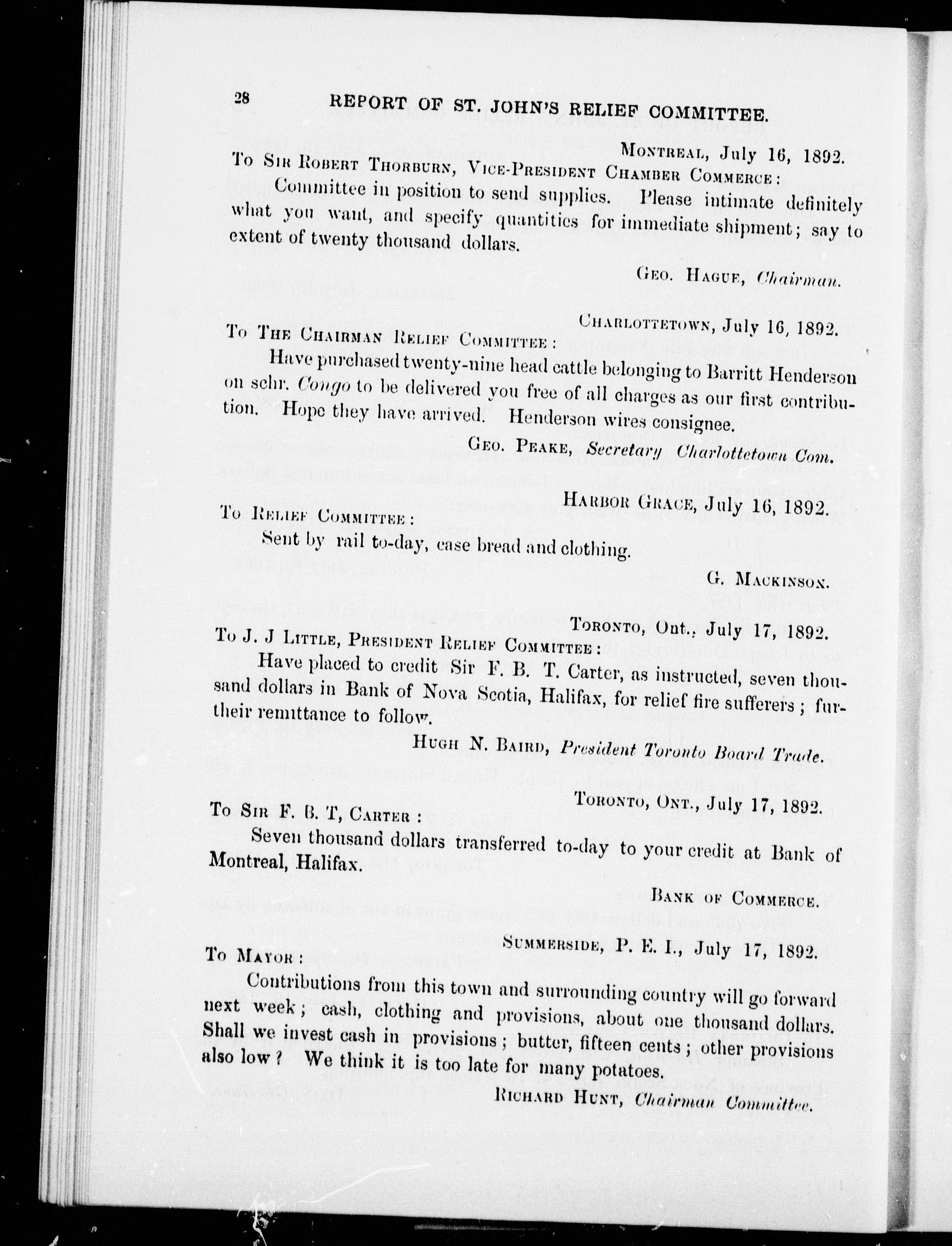 Report of the Saint John's Fire Relief Committee : fire of July 8, 1892. - Published
