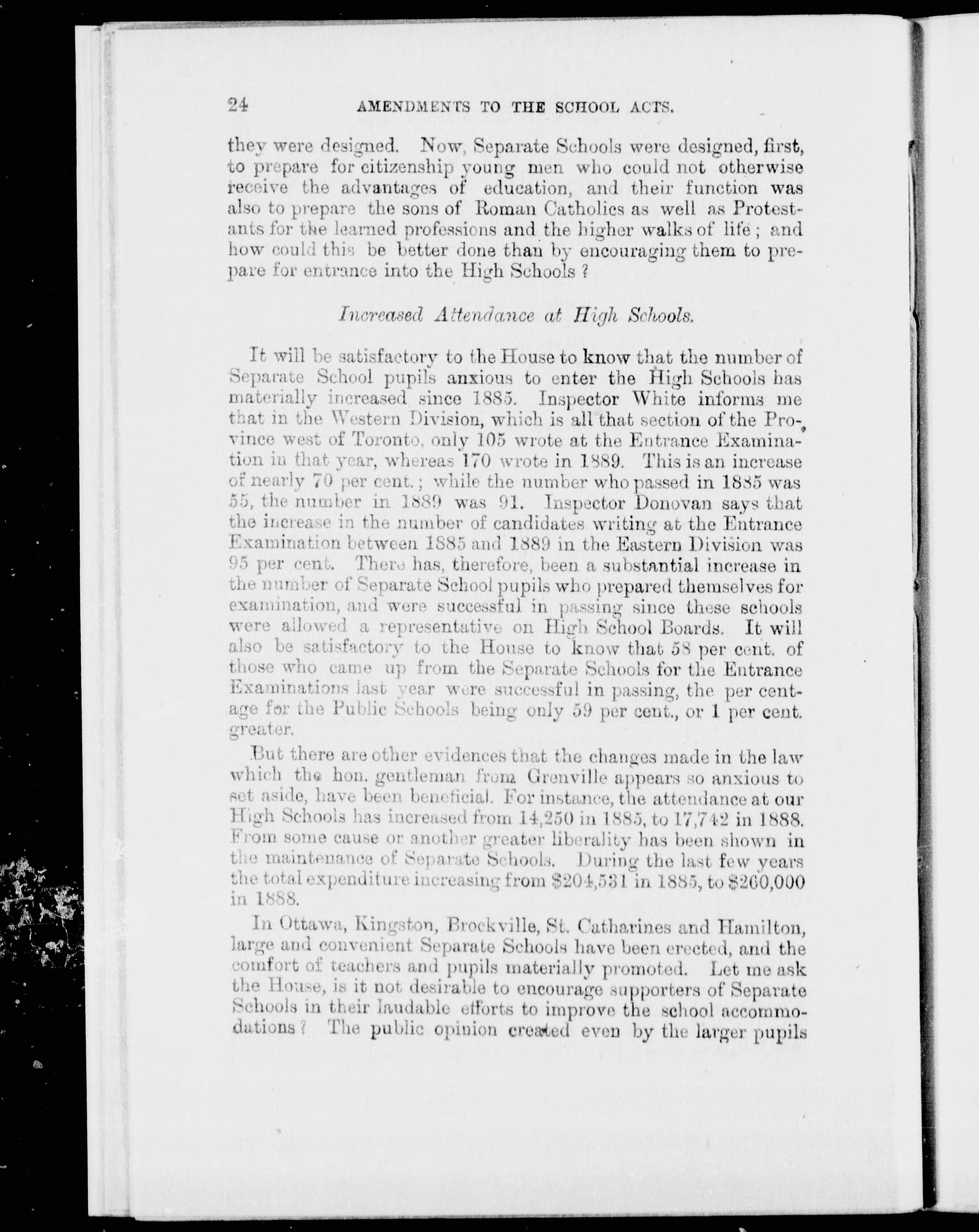 - A speech delivered by Hon. G.W. Ross, minister of education, in the Legislative Assembly, March 25, 1890 : subject, proposed amendments to the act relating to separate schools.