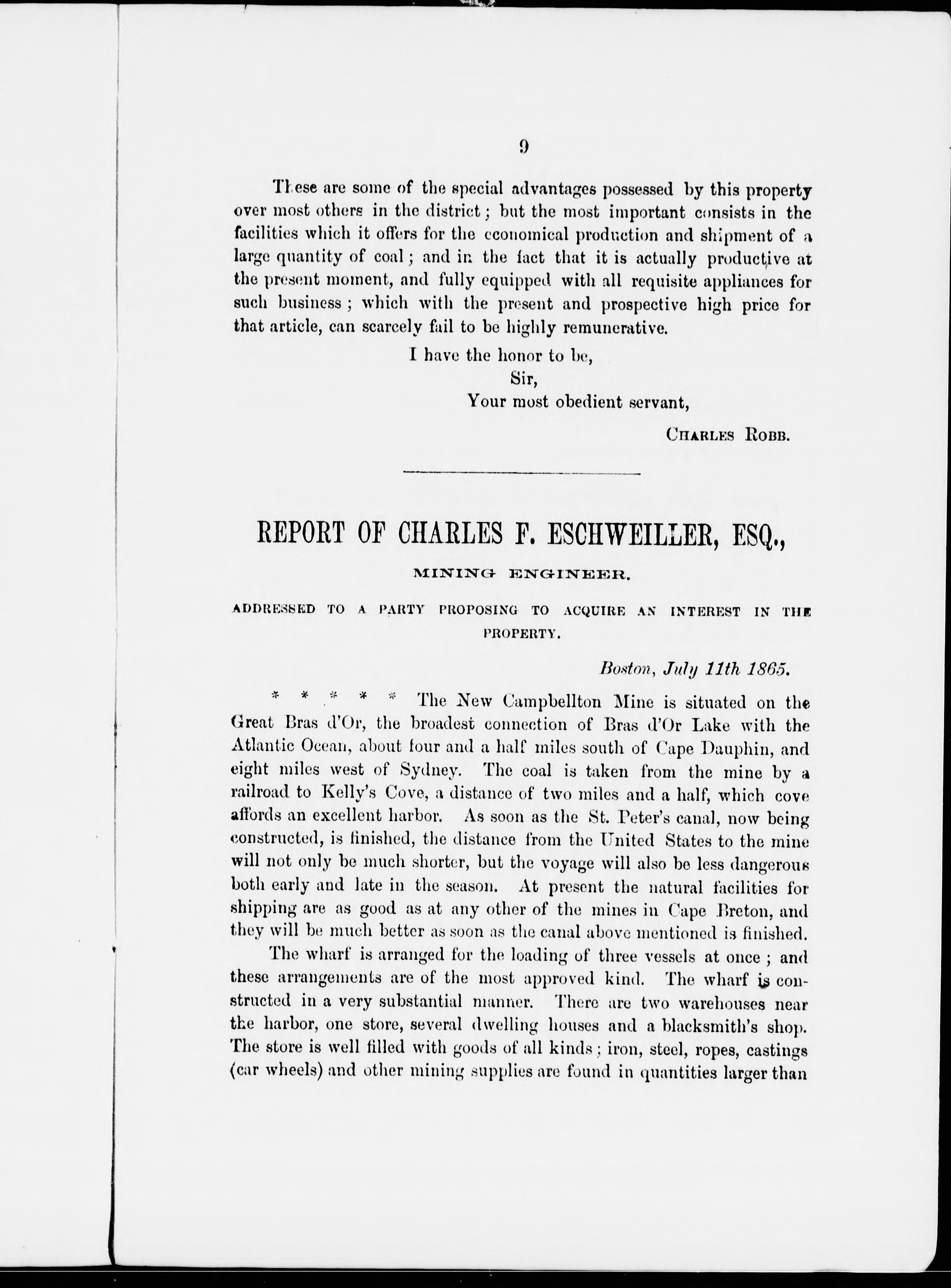 Reports on the property of the New Campbellton coal mines : comprising three square miles, situated in Cape Breton, Nova Scotia. - Adresse bibliographique