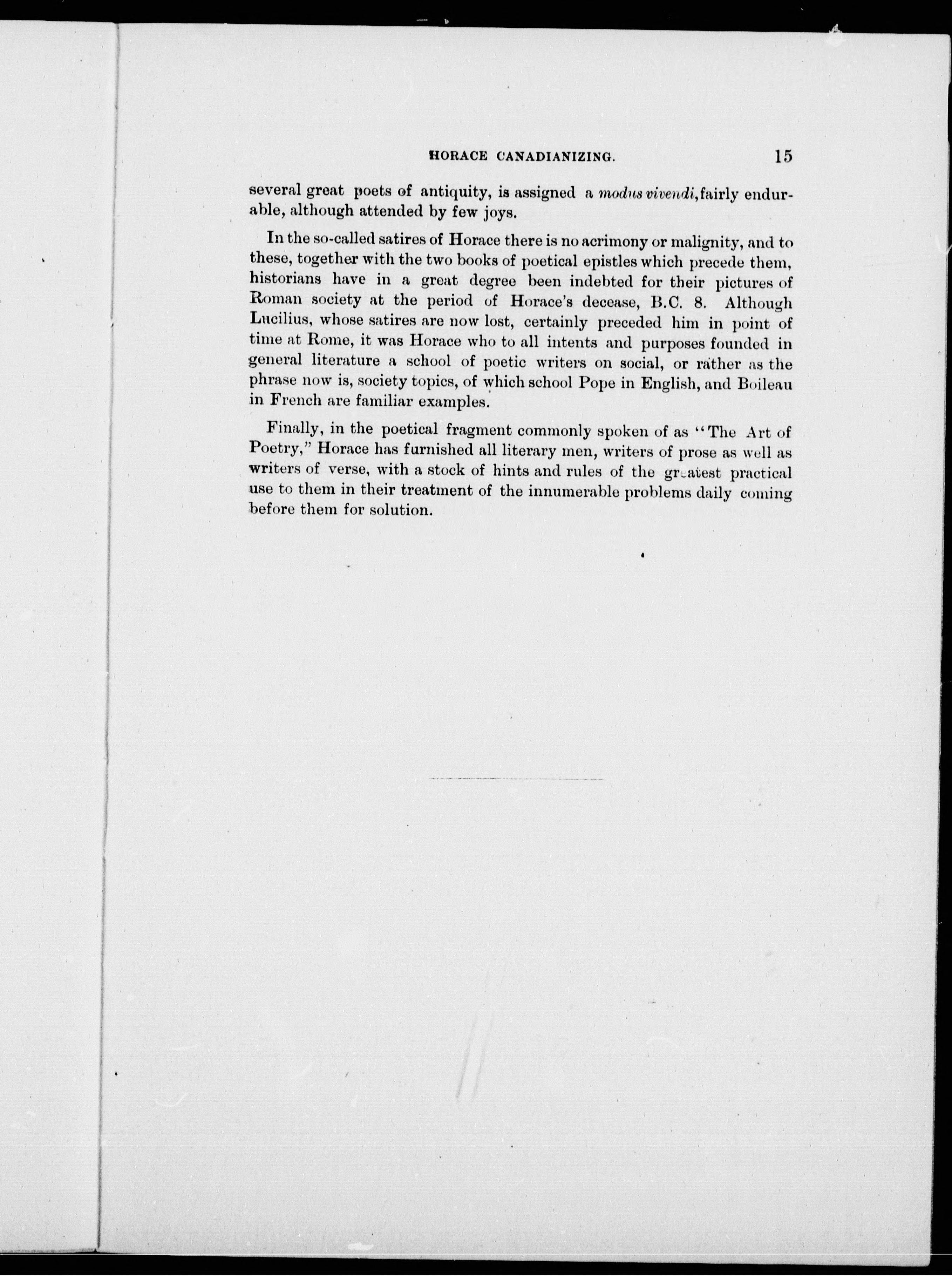 - Horace canadianizing, early pioneer life in Canada recalled by the sayings of the Latin poet Horace : being the Log shanty book-shelf pamphlet for 1894