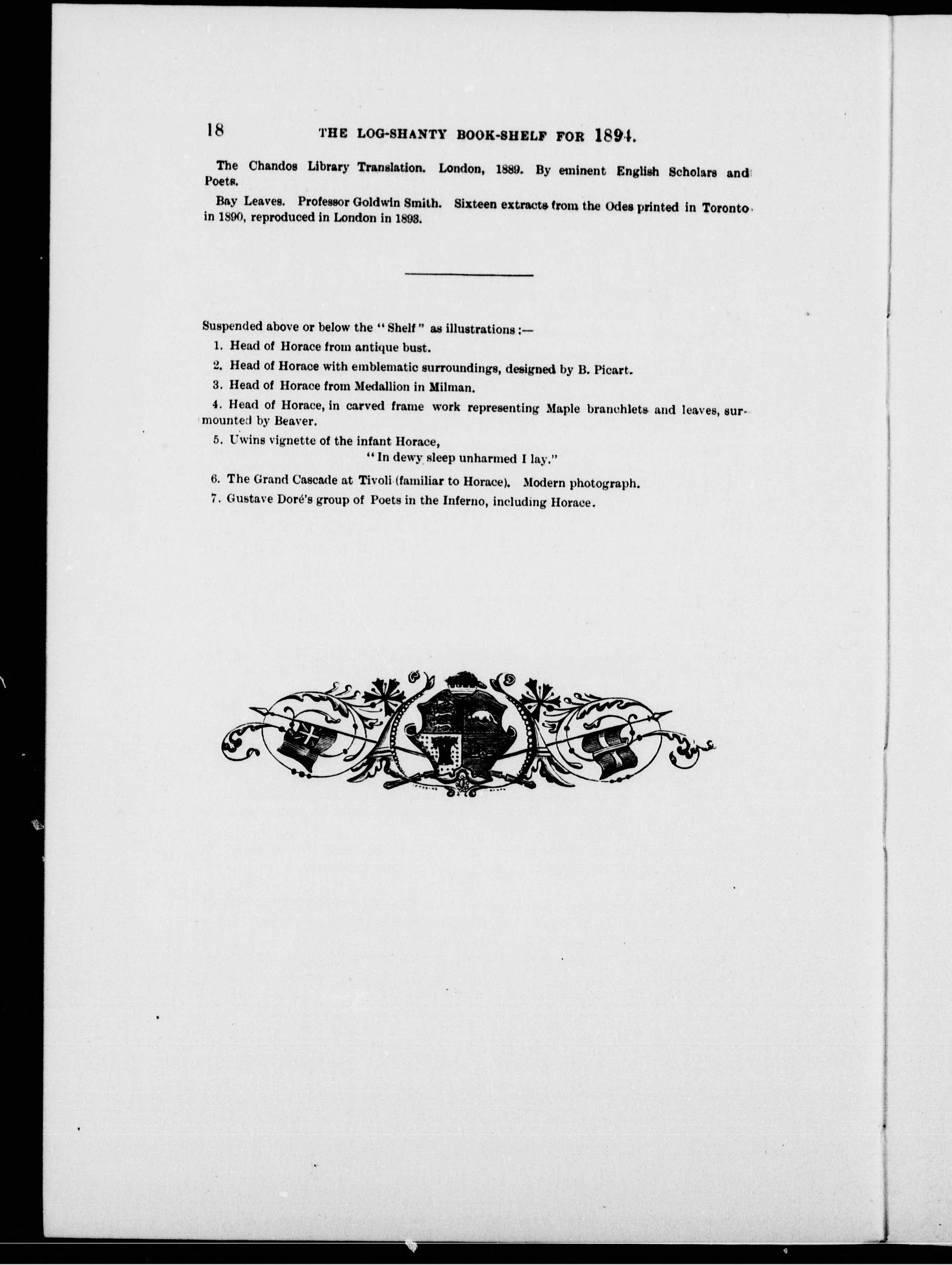 - Horace canadianizing, early pioneer life in Canada recalled by the sayings of the Latin poet Horace : being the Log shanty book-shelf pamphlet for 1894