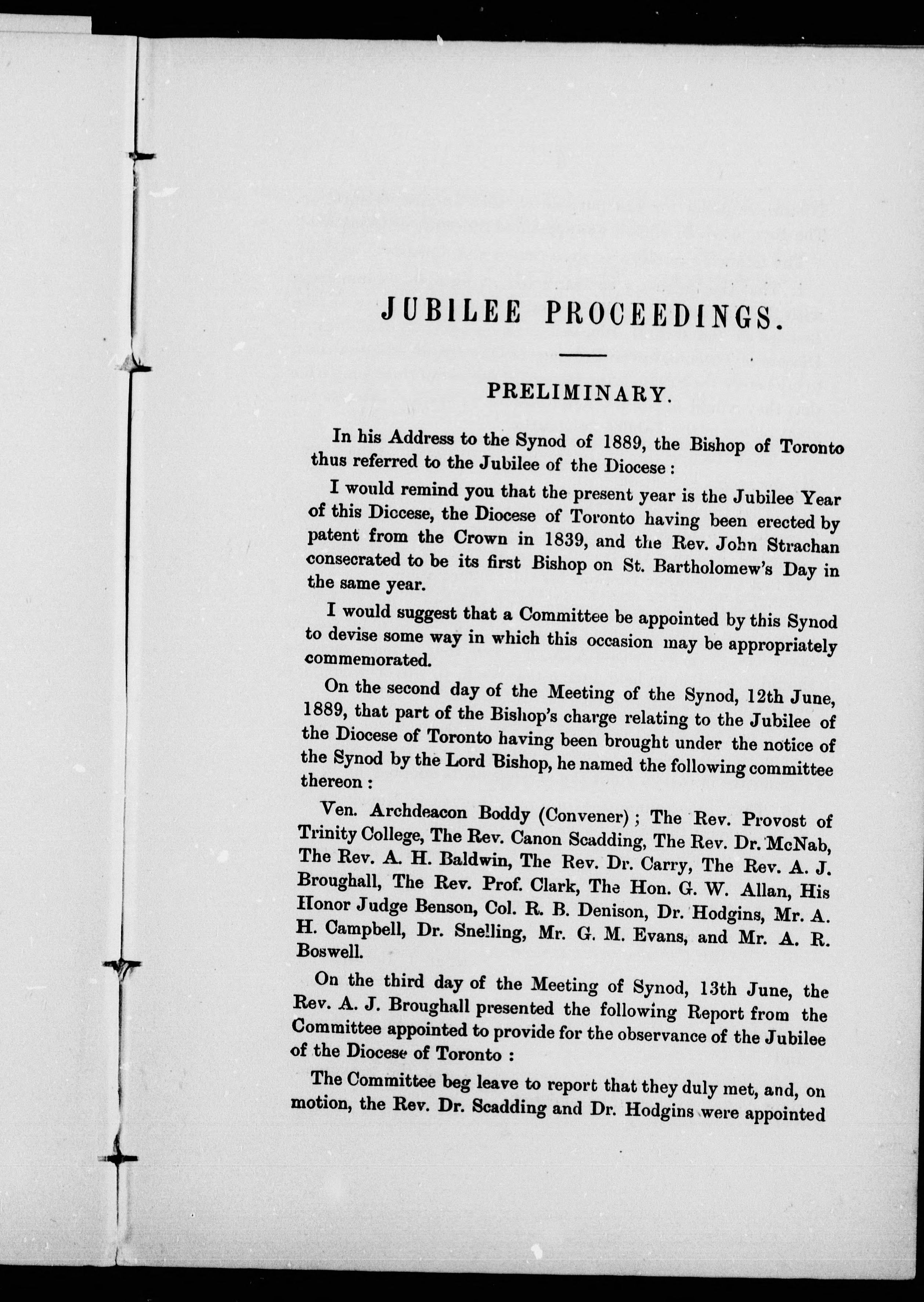 Jubilee of the Diocese of Toronto, 1839-1889 : record of proceedings connected with the celebration of the jubilee, November 21st to the 28th, 1889, inclusive