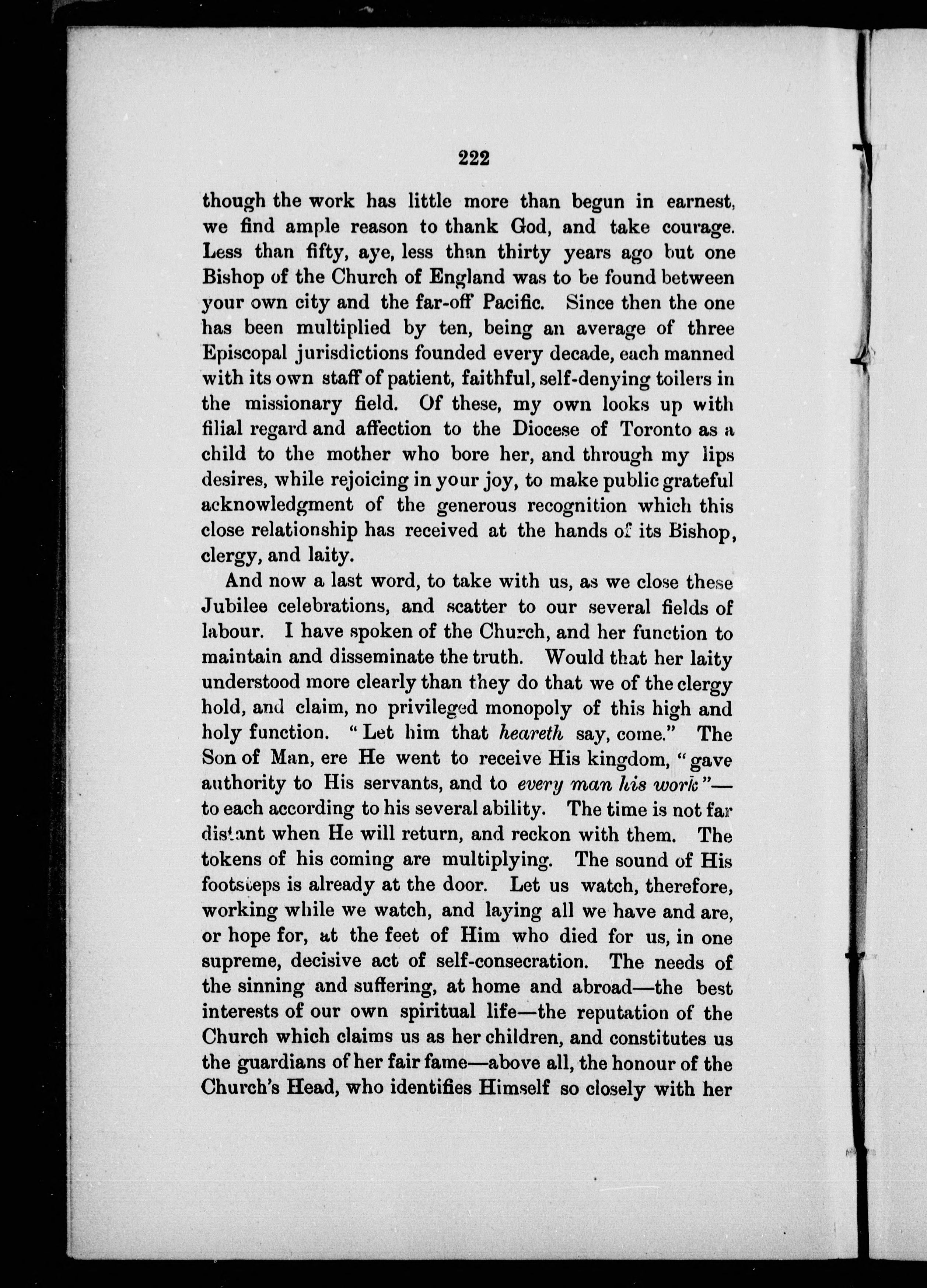 Toronto : Printed for the Jubilee Committee of the Diocese of Toronto by Rowsell and Hutchison, 1890.; 237 images, 234 avec recherche en texte intégral
