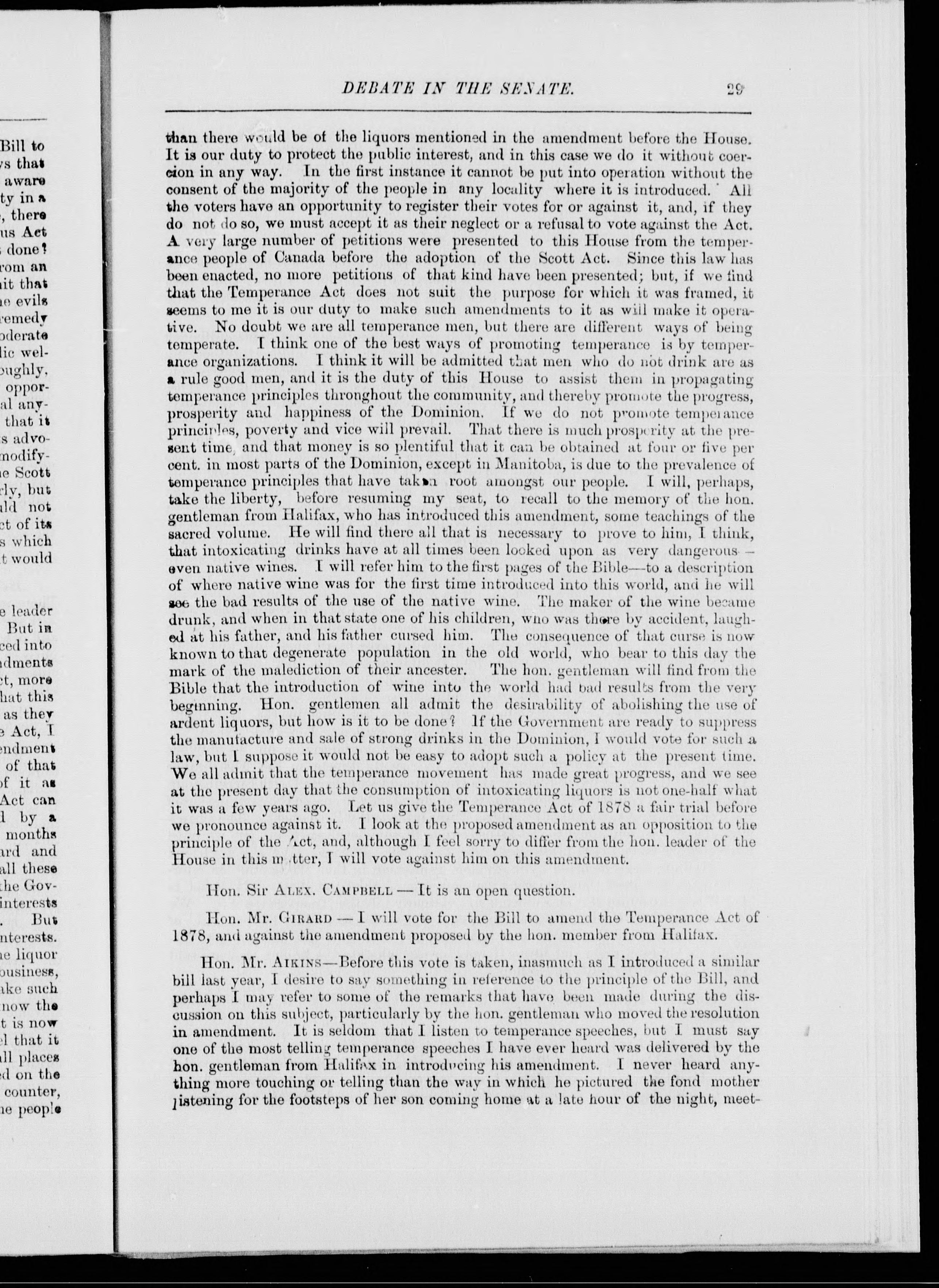 - The Scott Act : coercive legislation : debate in the Senate upon temperance by act of Parliament, with introductory remarks, opinions of the press, and results of recent test votes.