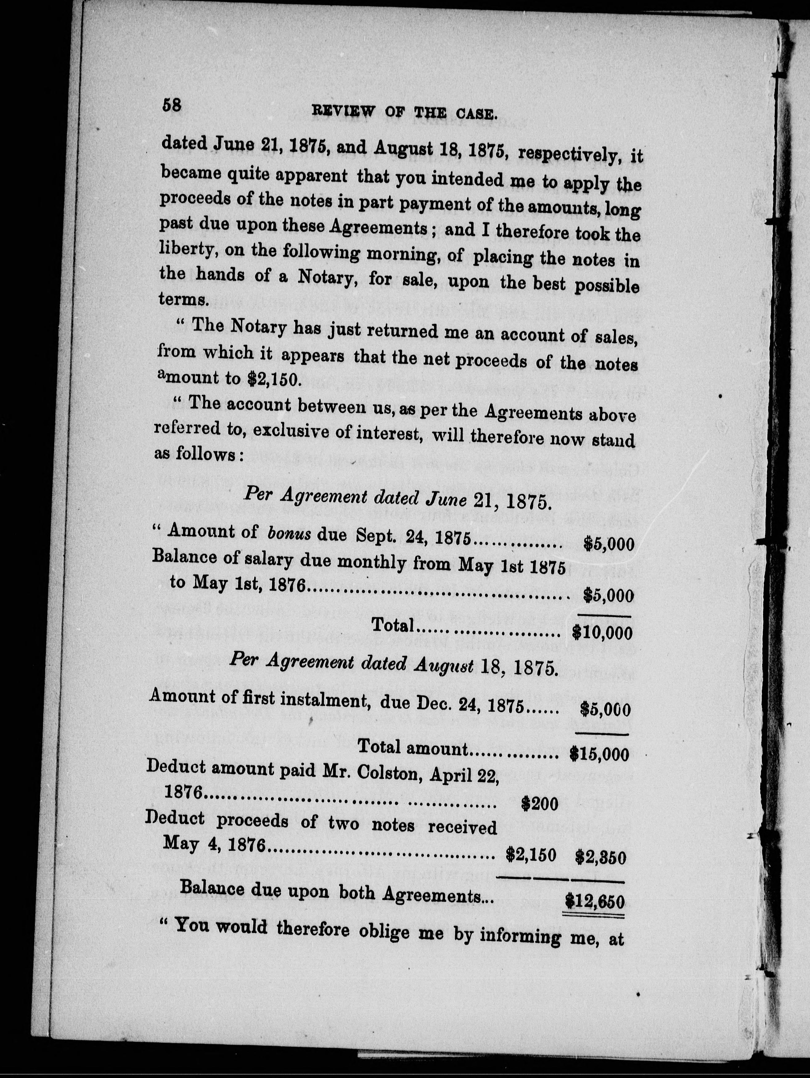 Memorandum of legal proceedings, based upon agreement dated August 18th, 1875 :