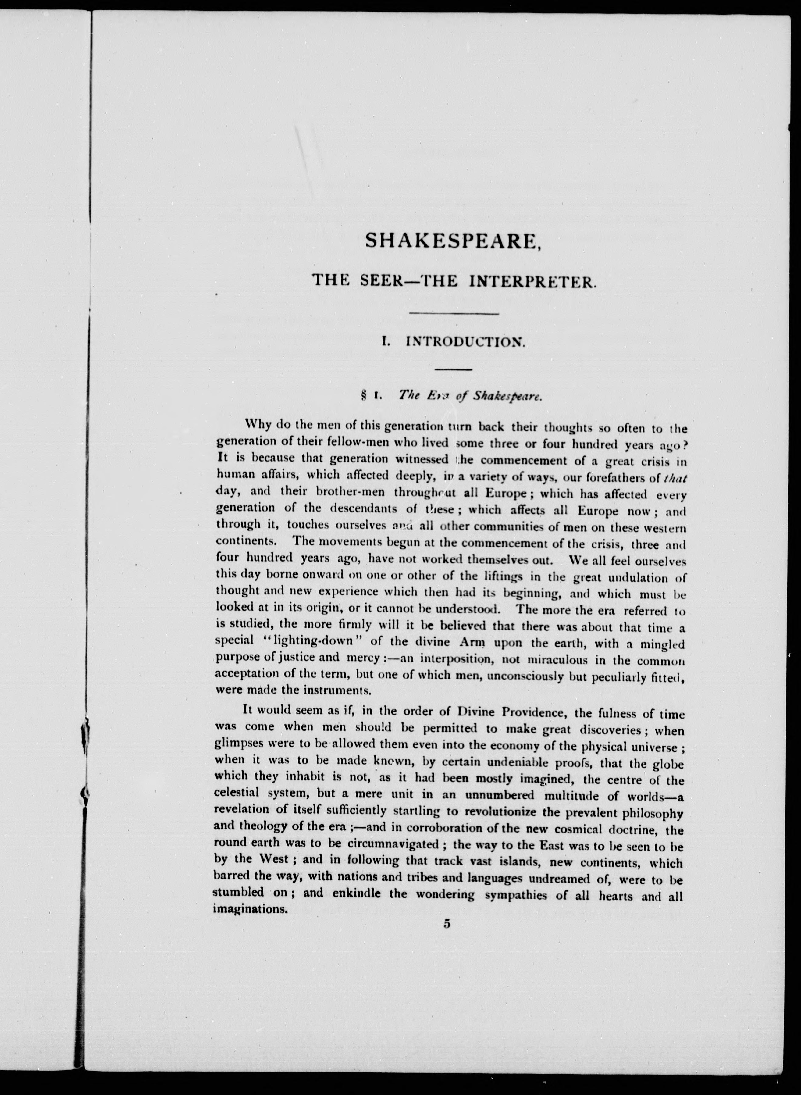 Shakespeare, the seer--the interpreter : the address delivered before the St. George's Society of Toronto, in the cathedral church of St. James, April the 23rd, 1864