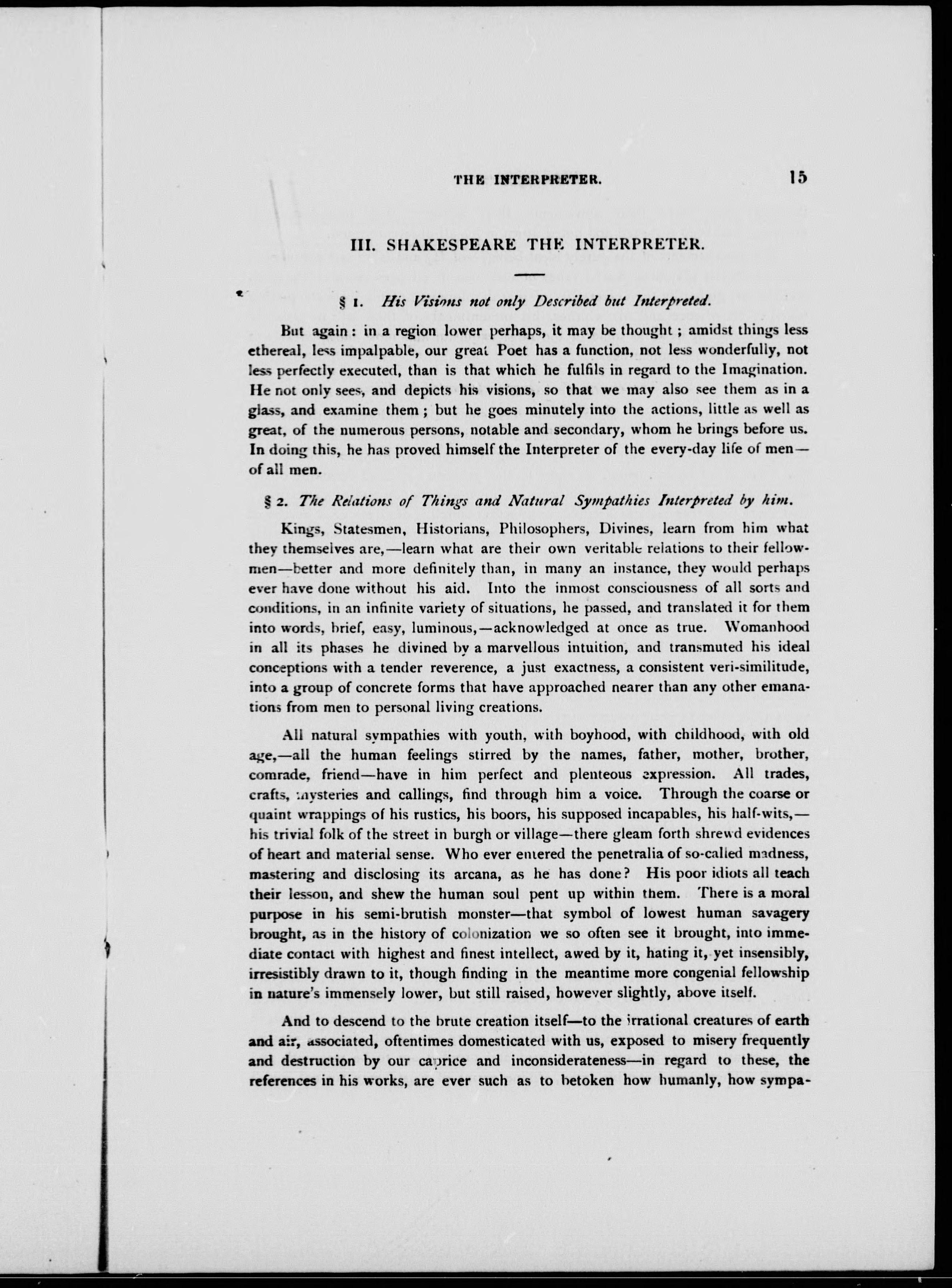 - Shakespeare, the seer--the interpreter : the address delivered before the St. George's Society of Toronto, in the cathedral church of St. James, April the 23rd, 1864