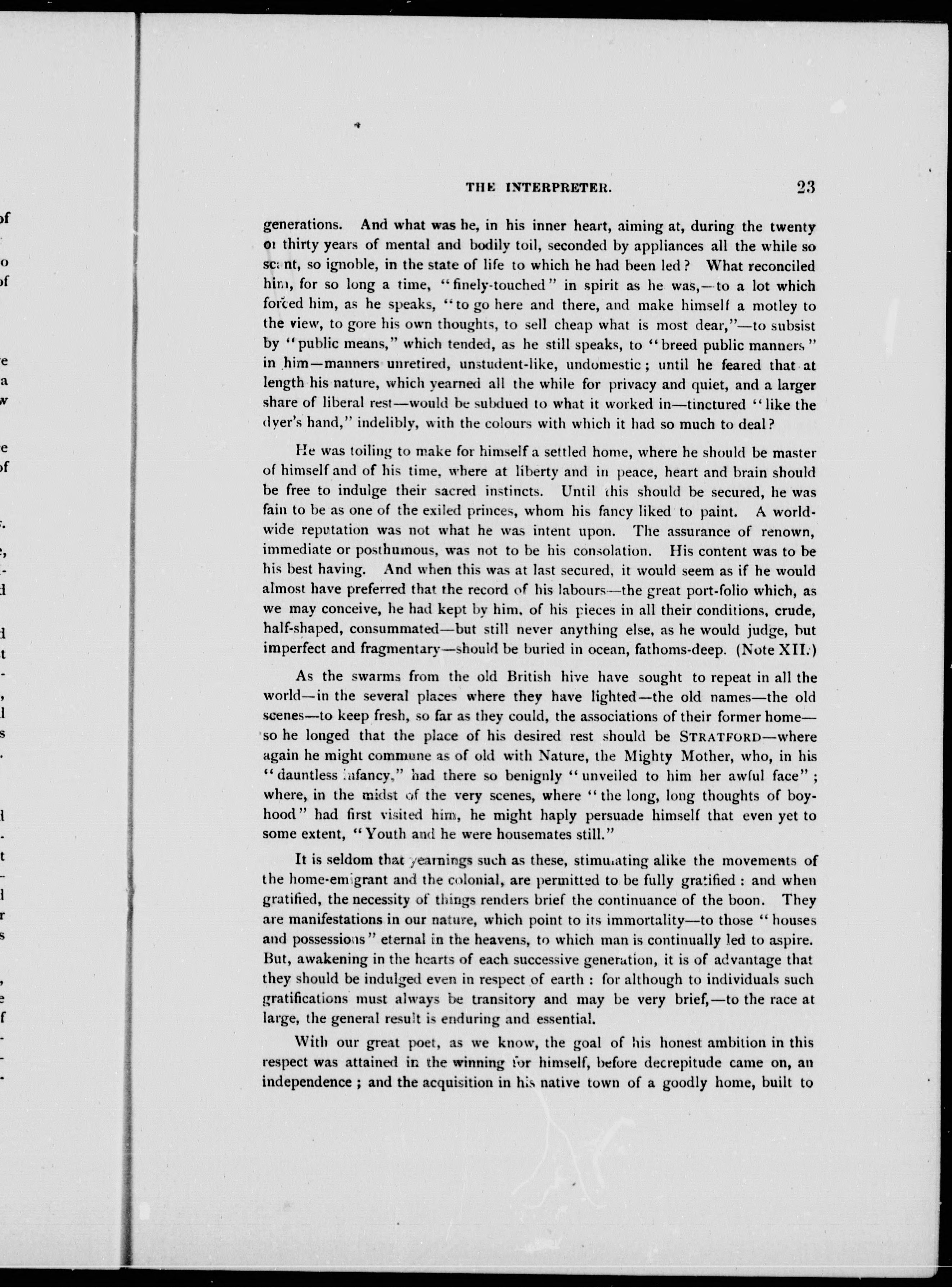 - Shakespeare, the seer--the interpreter : the address delivered before the St. George's Society of Toronto, in the cathedral church of St. James, April the 23rd, 1864