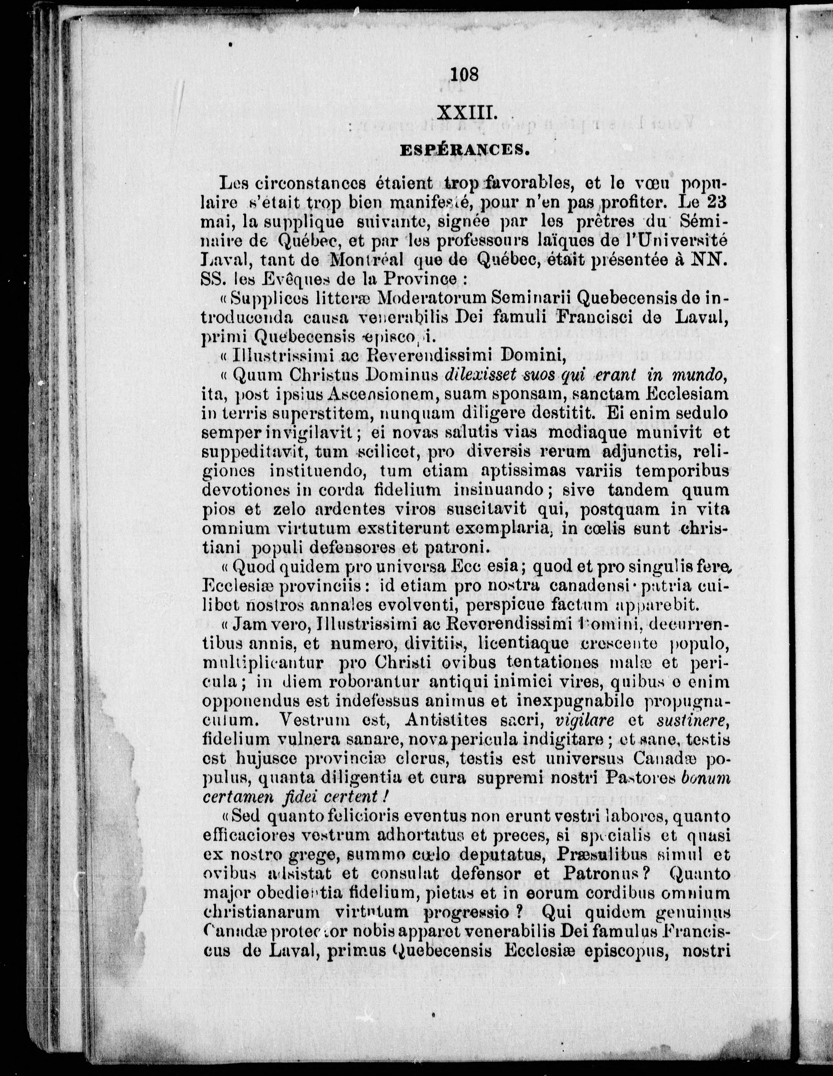 - Translation des restes de Mgr de Laval à la chapelle du Séminaire de Québec : relation de tout ce qui s'est passé dupuis l'exhumation des ossements de Mgr de Laval le 19 septembre 1877 jusqu'à leur déposition au séminaire le 23 mai 1878.