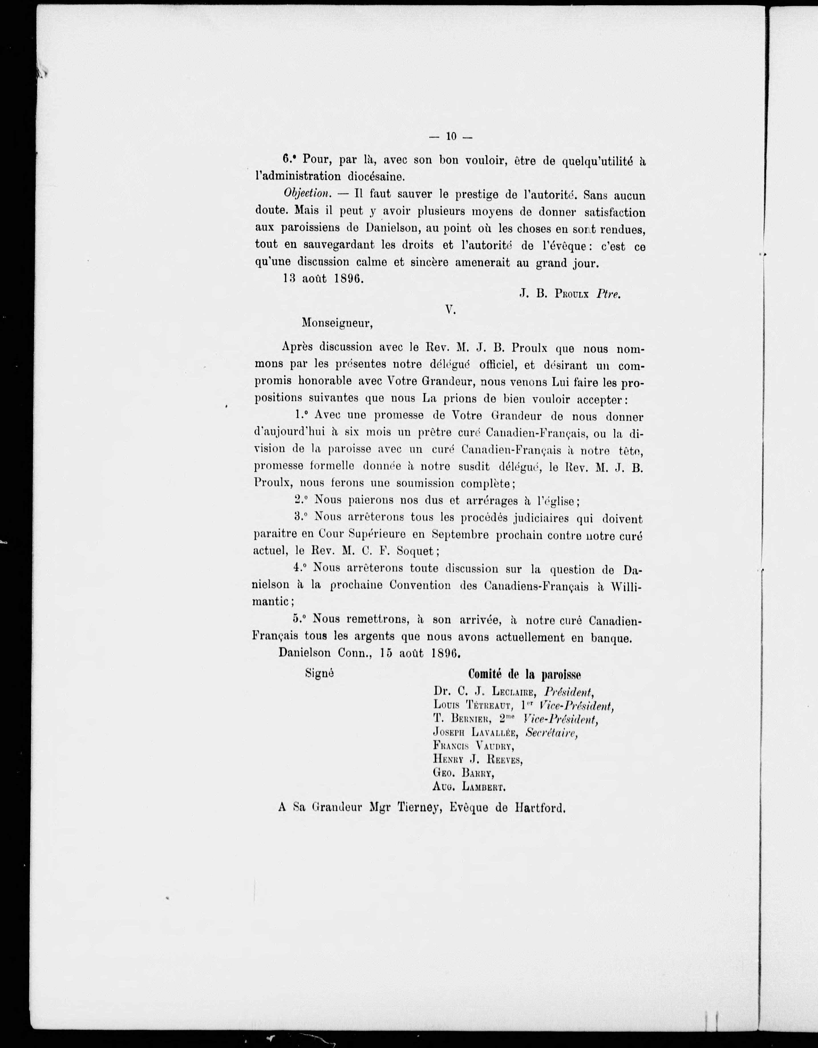 Journal de mes pas et démarches dans le diocèse de Hartford au sujet de la question de Danielson /