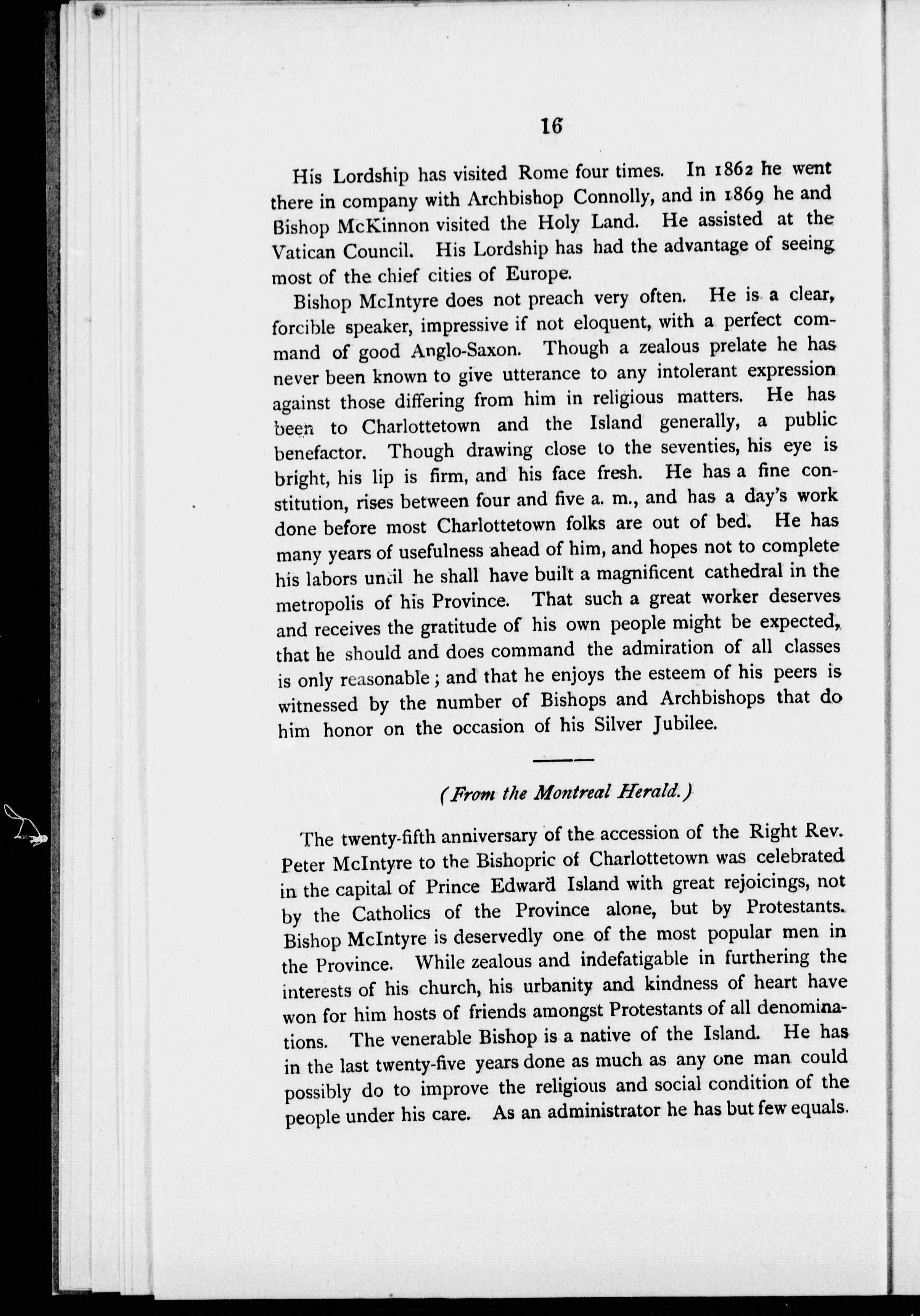 Silver jubilee celebration of their lordships bishops McIntyre and Rogers : Charlottetown, August 12, 1885.