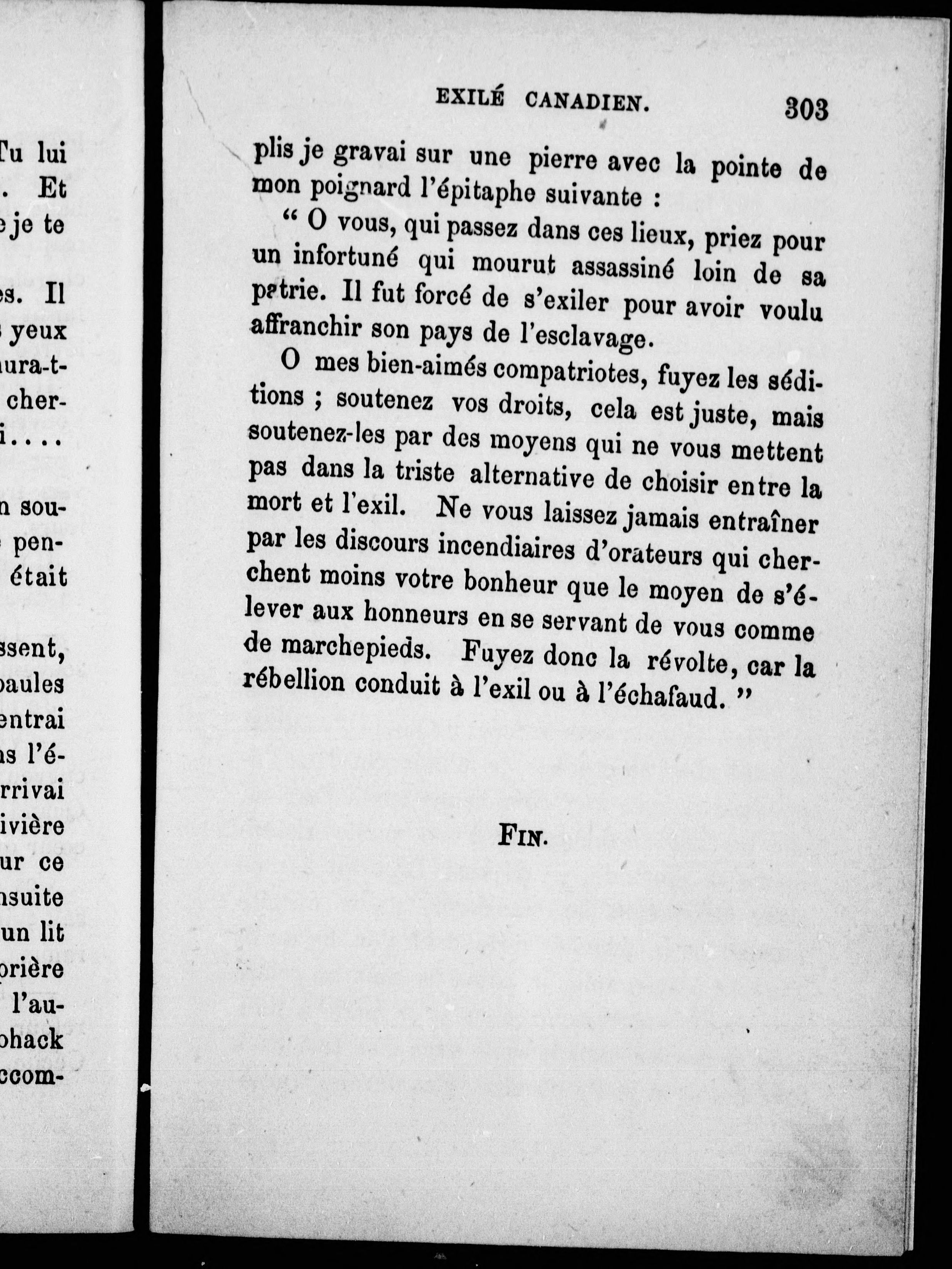 Souvenirs d'un exilé canadien