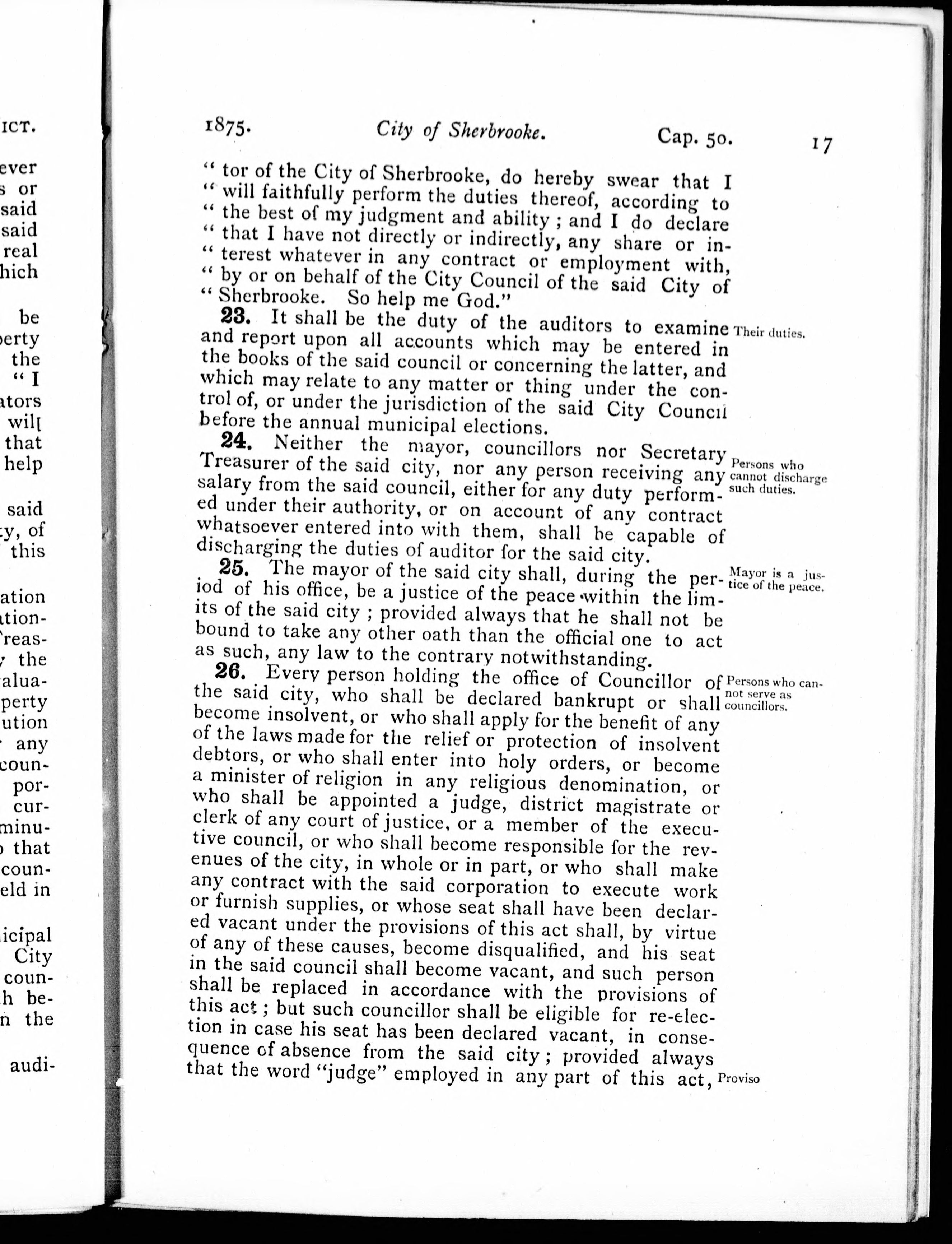 Act of incorporation of the city of Sherbrooke, and amendments.