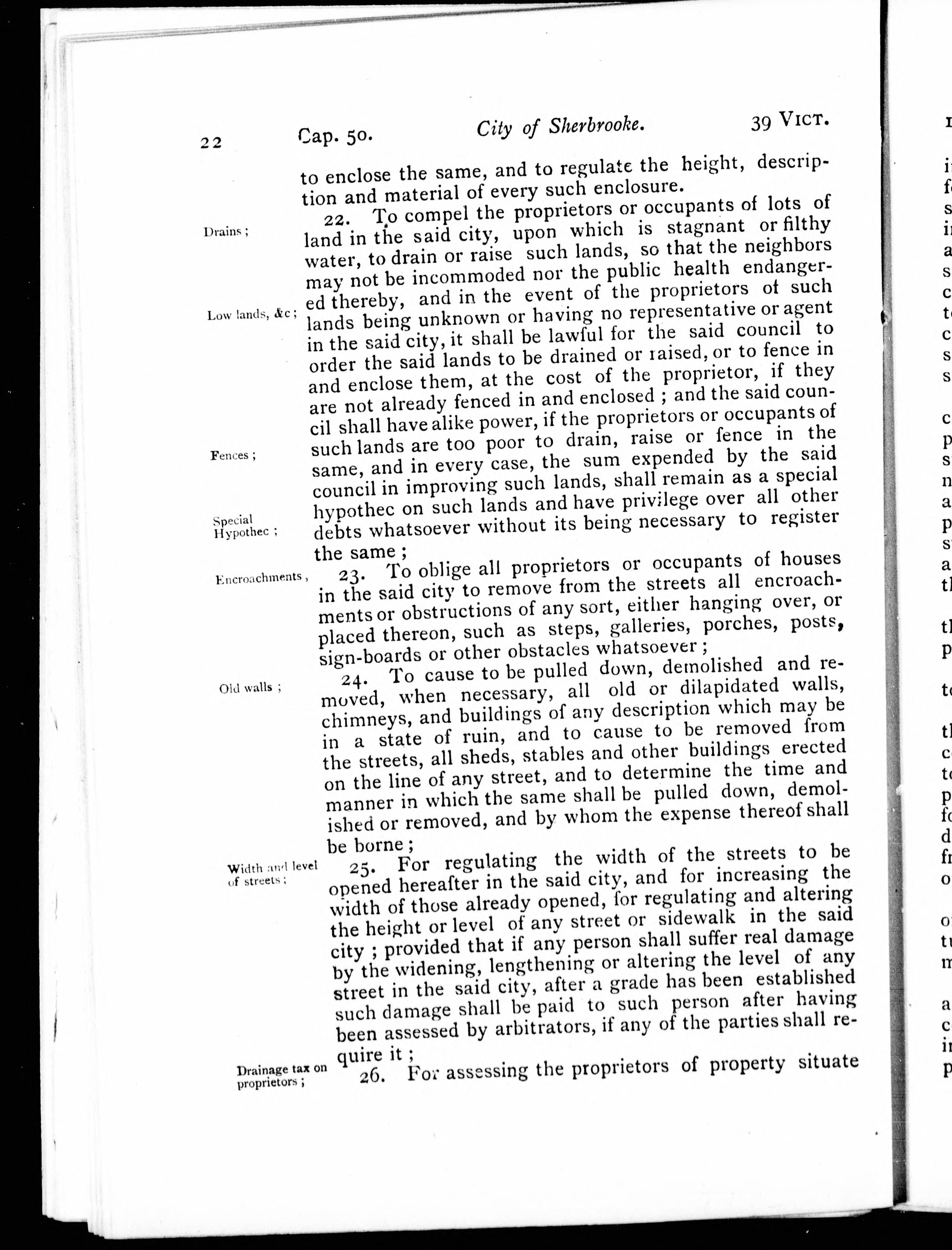 Act of incorporation of the city of Sherbrooke, and amendments.