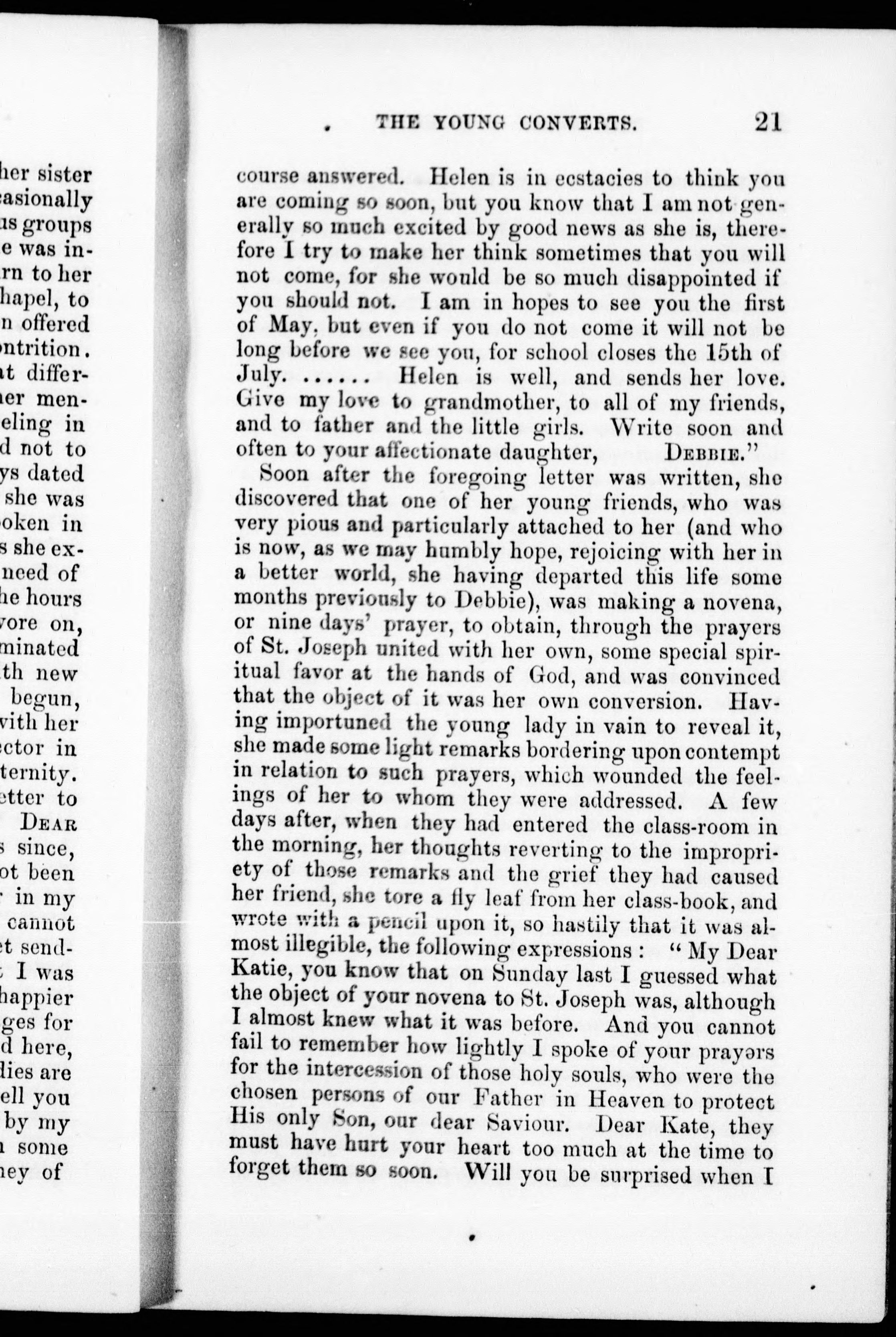 Also published in French under the title: Les Jeunes converties ou Mémoires des trois soeurs Debbie, Helen et Anna Barlow.