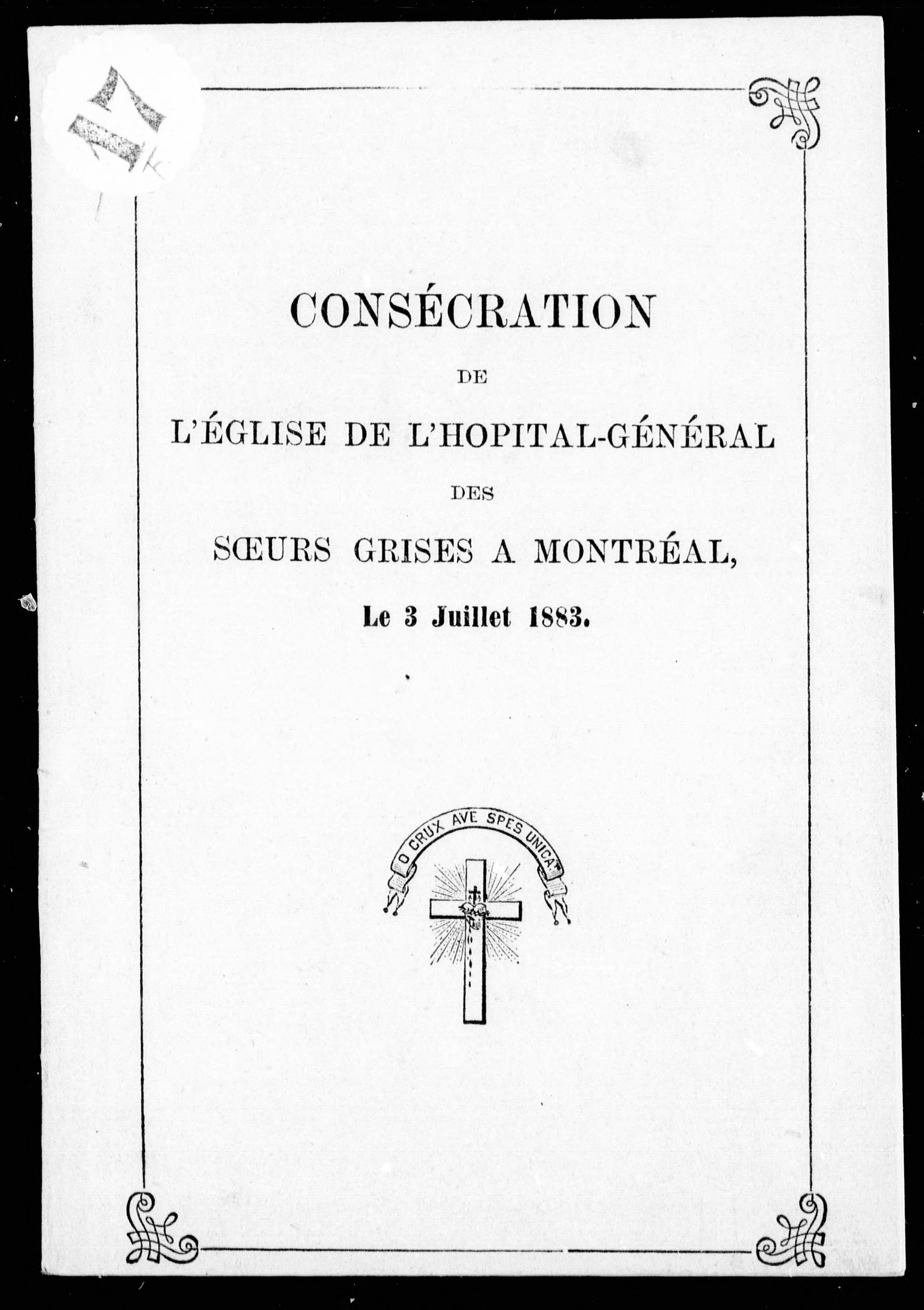 - Consécration de l'église de l'Hôpital-général des Soeurs grises à Montréal, le 3 juillet, 1883