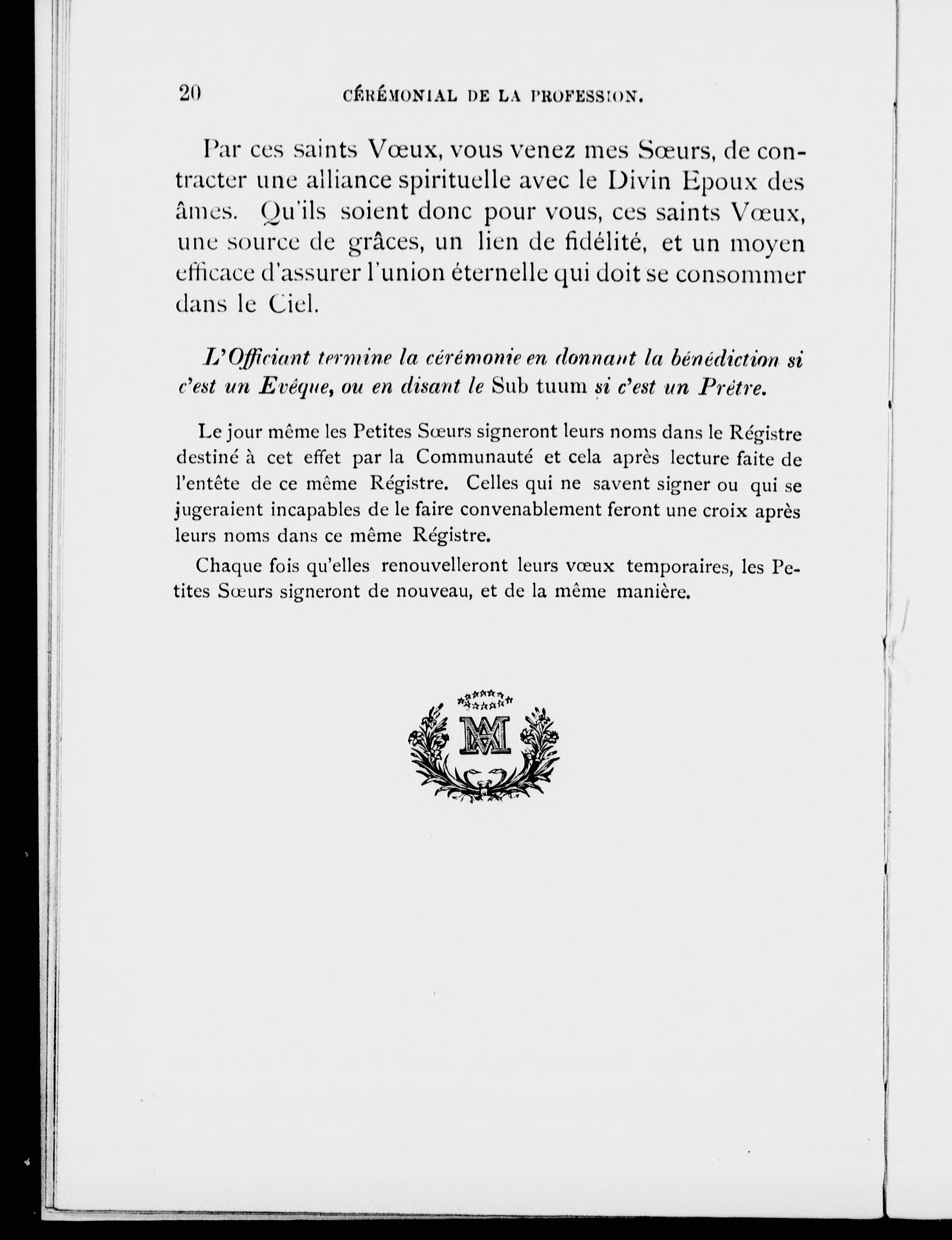 Cérémonial pour les vêtures et professions des Petites soeurs auxiliaires de l'Hôpital-général de Montréal.
