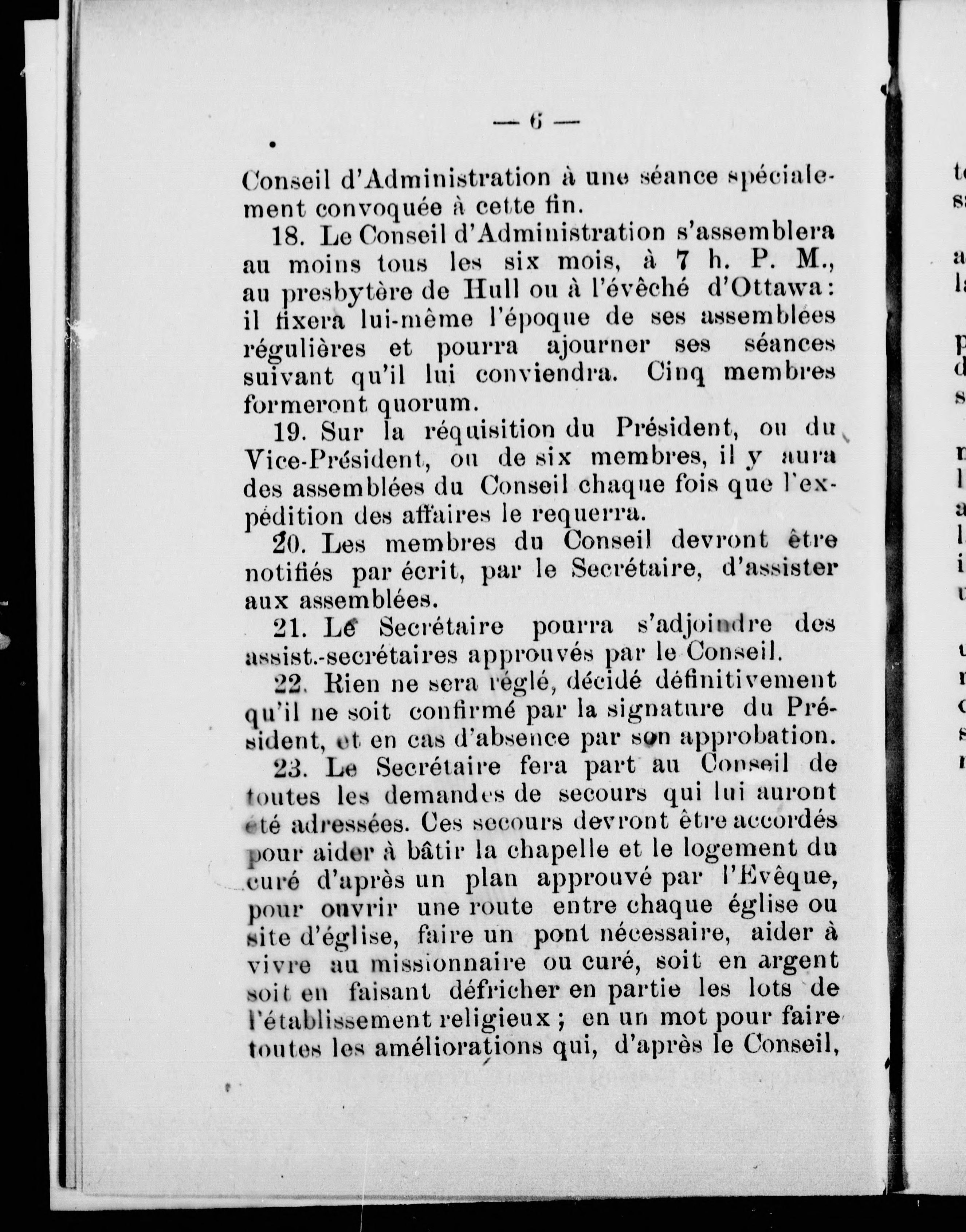 Constitution de la Société de colonisation du diocèse d'Ottawa.