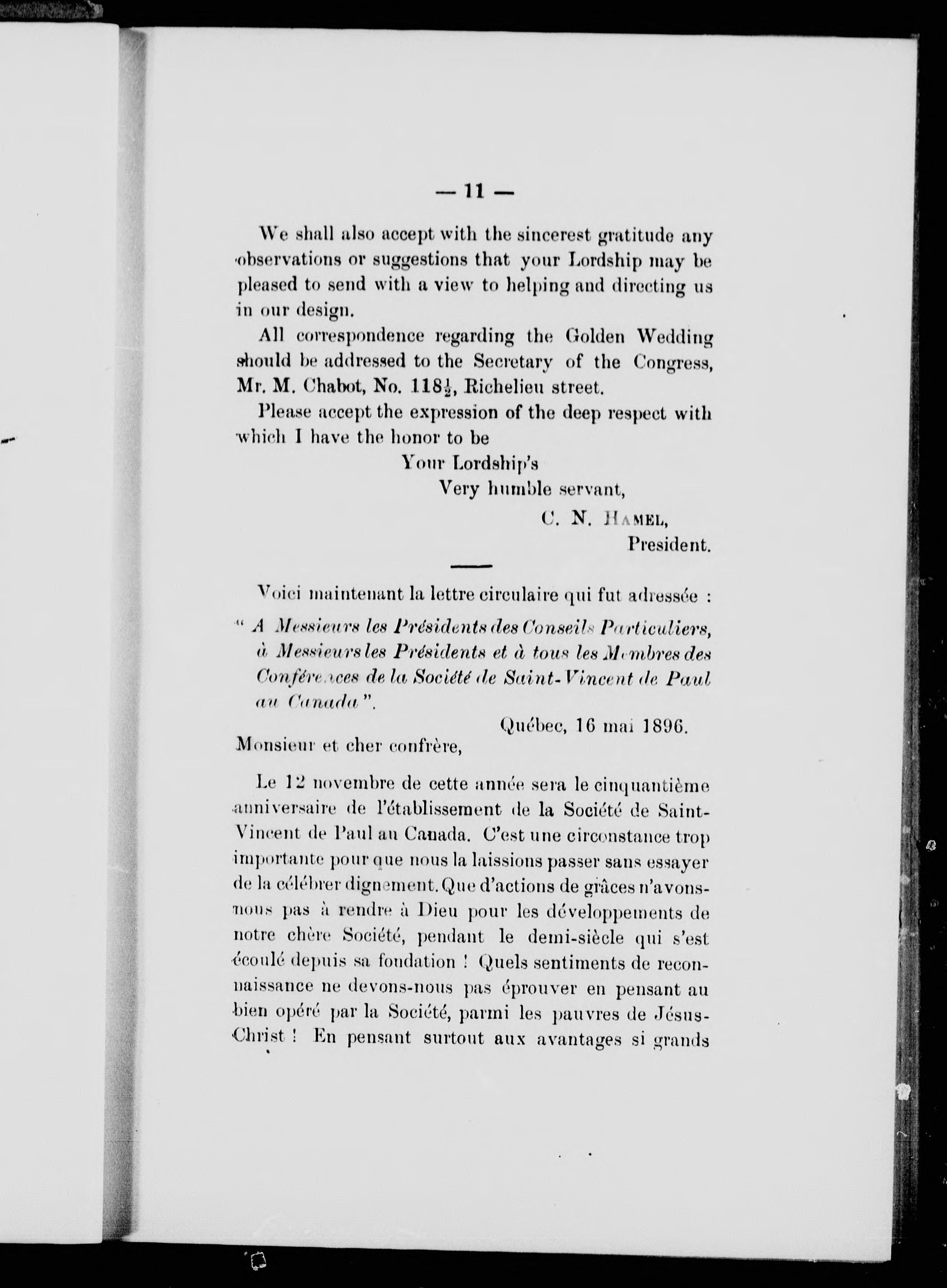 Les Noces d'or de la Société de Saint-Vincent de Paul à Québec, 1846-1896.