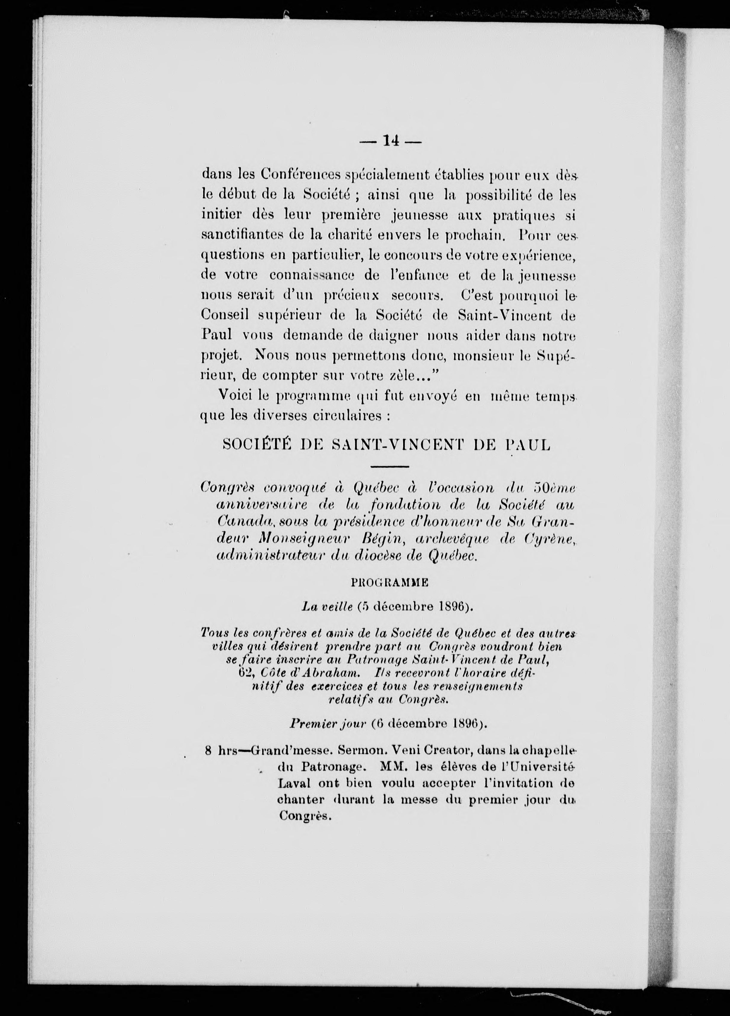 Les Noces d'or de la Société de Saint-Vincent de Paul à Québec, 1846-1896.