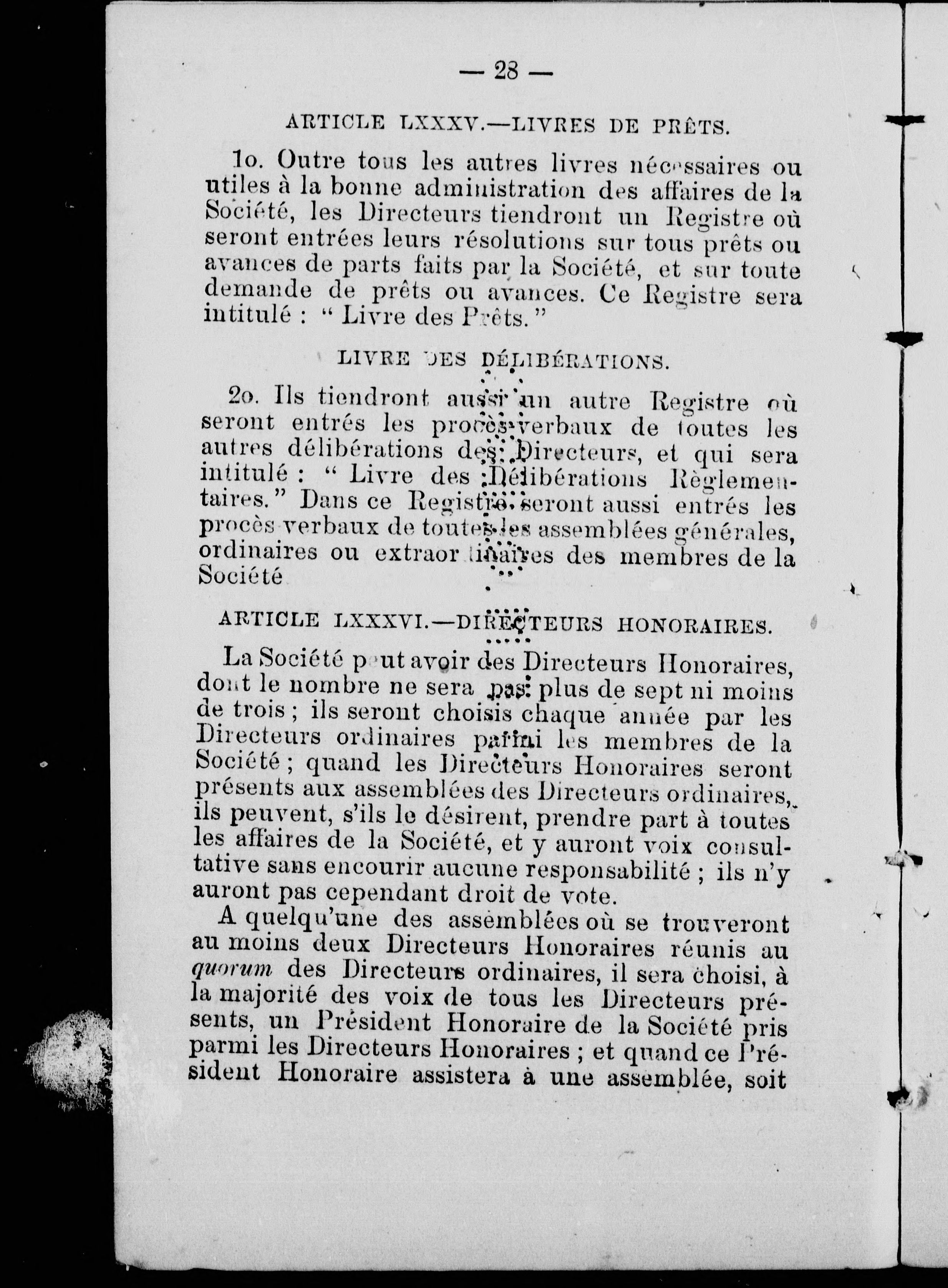 Règlements de la Société permanente de construction des artisans :