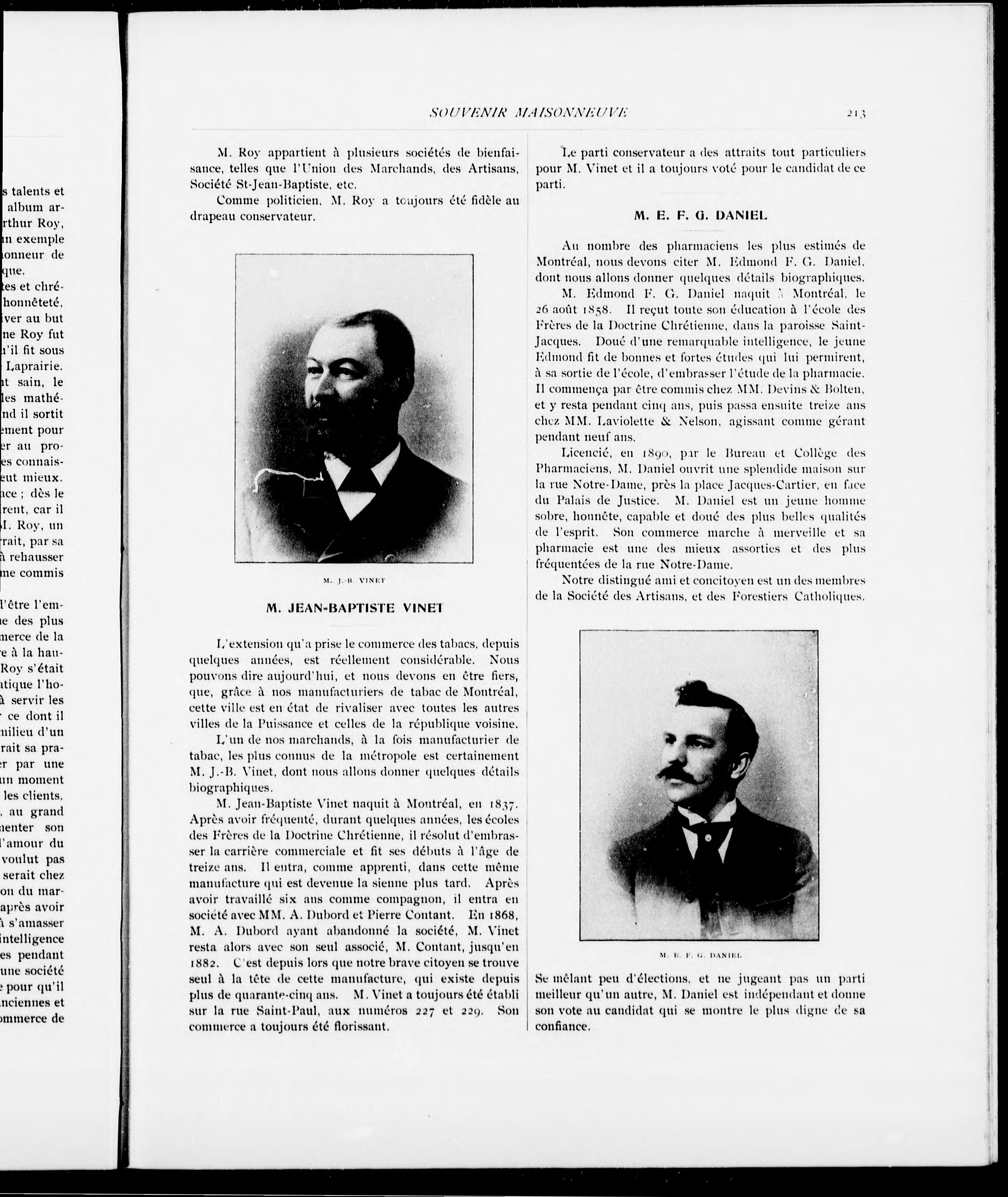 - Souvenir Maisonneuve, esquisse historique de la ville de Montréal : avec portraits et biographies de quelques-uns de nos canadiens-français distingués.